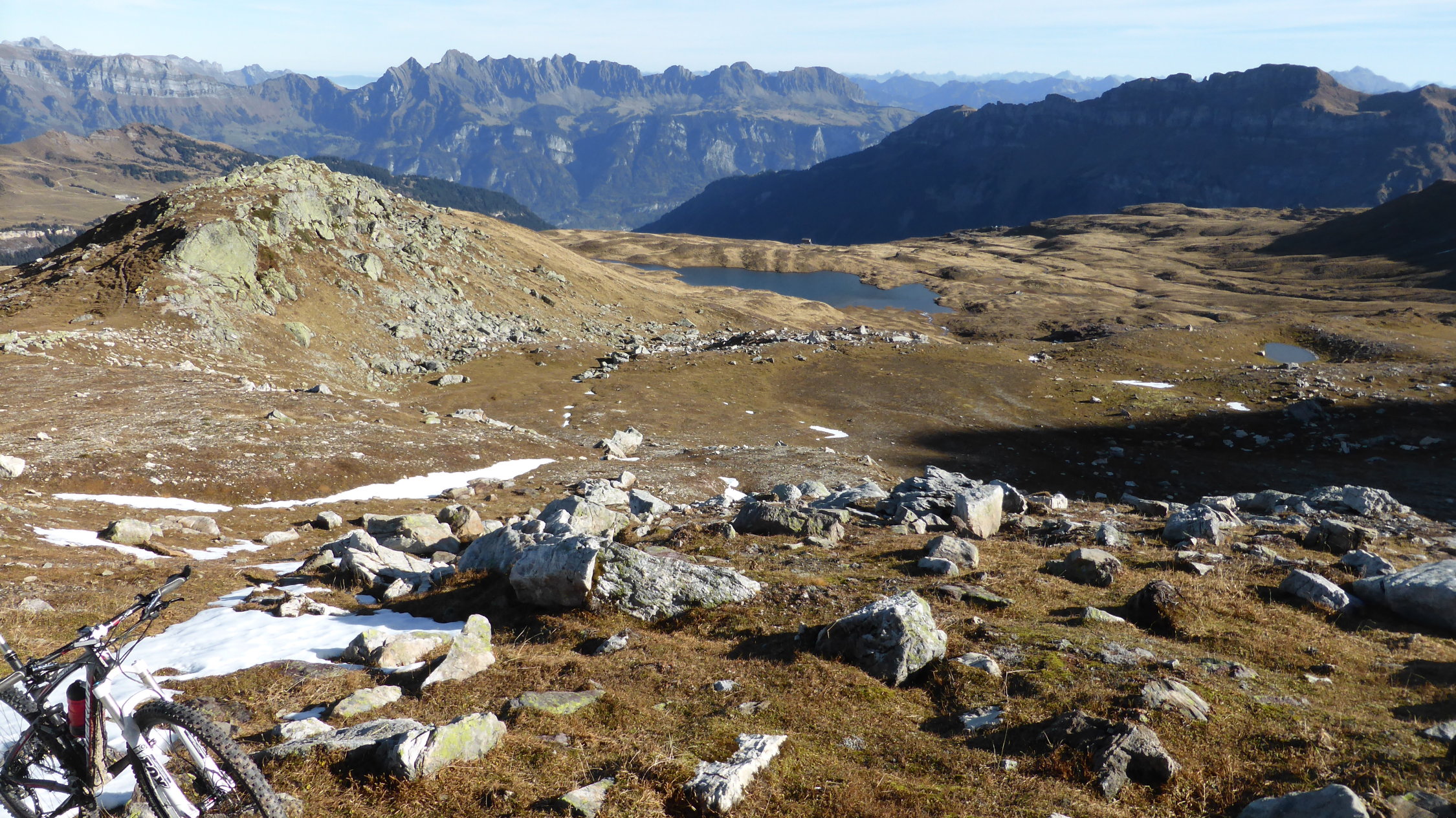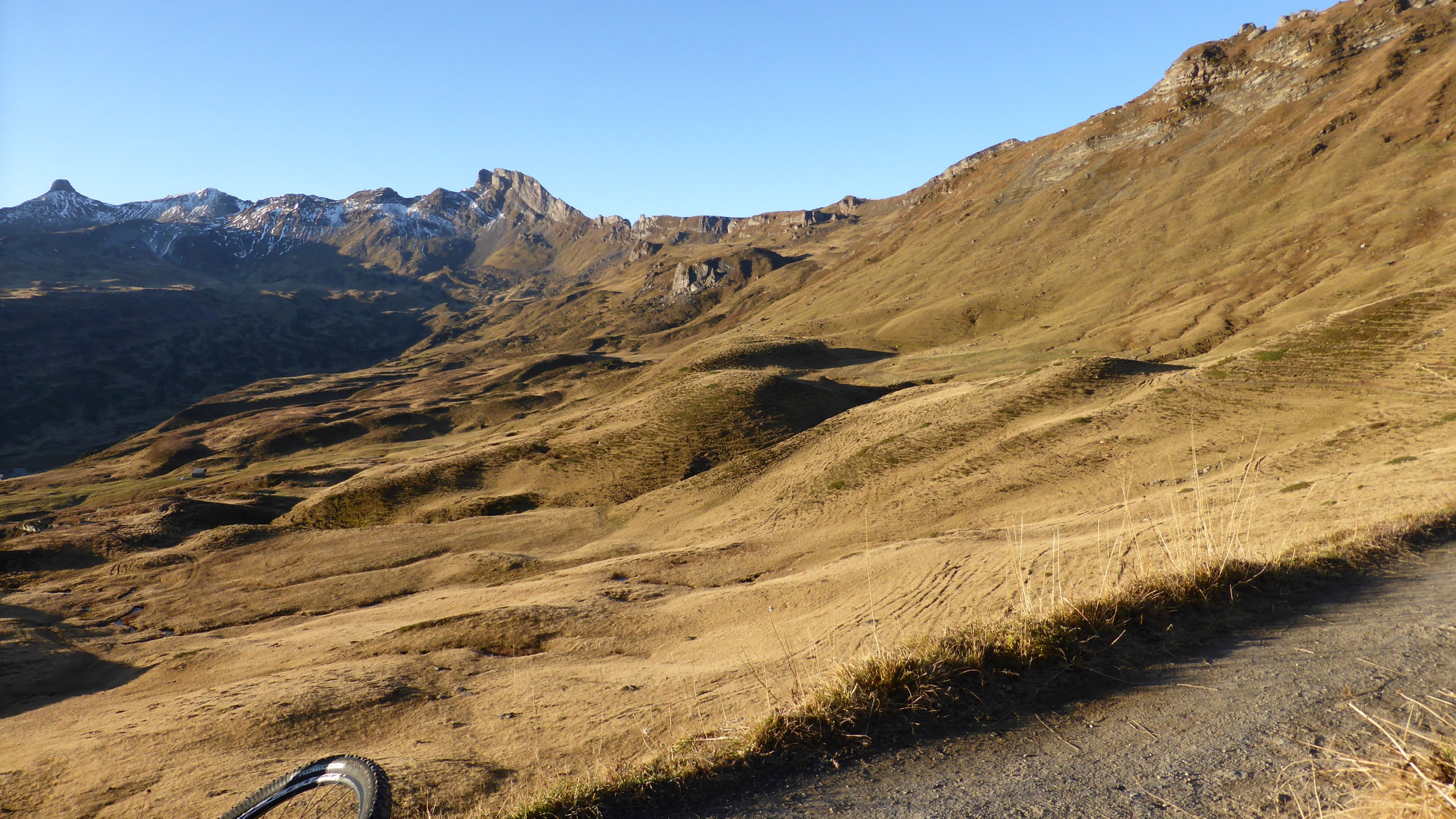 Meist trocken und nur wenig Schnee beim Bikedepot auf 2350 müM