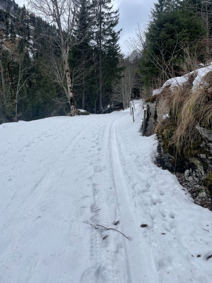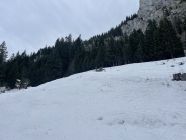 Plus 4 Grad beim PP Meniggrund, bewölkt, aber mit guten Sichtverhältnissen. Ausser mir nur noch zwei Tourengängerinnen am Gestelegrat, ich hatte den Stand für mich alleine. Auch nicht gerade häufig und ein Hinweis, wie die Verhältnisse eingeschätzt wurden. Während des Aufstiegs dachte ich mir, die Skeptiker könnten mit Blick auf die Abfahrt Recht bekommen, es sah schwer nach Bruchharsch aus, was ich GAR nicht liebe. Die Pause beschränkte ich aufs Notwendigste und nach wenigen harschigen Metern gelangte ich in den südwestlichen Hang, der zum Seeberg führt, und der war tragend hart und gut zu fahren! Das unterschied für mich heute gut von machbar oder gar schlecht, wenns um die Note geht. Ich bin da sehr abfahrtslastig. Ab Seeberg dann kurz löchrig, dann aber einigermassen tragend bis zum Brätliplatz. Darunter nahm ich die Abkürzung, die ging heute gut, weil griffig weich. Rest problemlos bis zum PP.