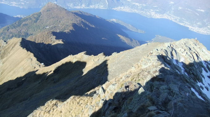 Tourenbeginn um 06:50 (heute umgestellter Winterzeit) Uhr bei 6°C. Im Gipfelbereich kalter Nordwind. Alles war schneefrei. Lediglich die Nordseite war im oberen Bereich nur leicht überzuckert. Höher als auf diesen Berg geht es am Comer See nicht mehr.