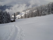 Mit etwas "laufenlassen" in den flacheren Abschnitten, gings ansonsten in schönen Schwüngen zu Tale. Einzig, dass ich die guten Ski mit mehr Auftrieb nochmal zu Hause gelassen habe, trübte die Sache etwas;-). Steinkontakt- Fehlanzeige!