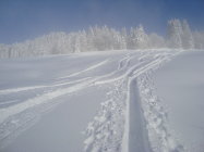 Die Spur verdient das Prädikat "Nachhaltig", wurde sie doch wo es ging, eben nicht in die Abfahrtsroute gelegt! Das nenn ich Spuren mit Köpfchen, da haben andere bis zum nächsten Schneefall auch noch was davon. Danke!