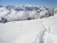 Gut erreichbar, je nach Routenwahl überschaubare Höhenmeter, sicheres Gelände auch bei erheblich und nicht zuletzt die famose Aussicht machen diese eher unscheinbare Erhebung, zu einer guten Adresse zum Saisonstart und bei grossen Neuschneemengen.