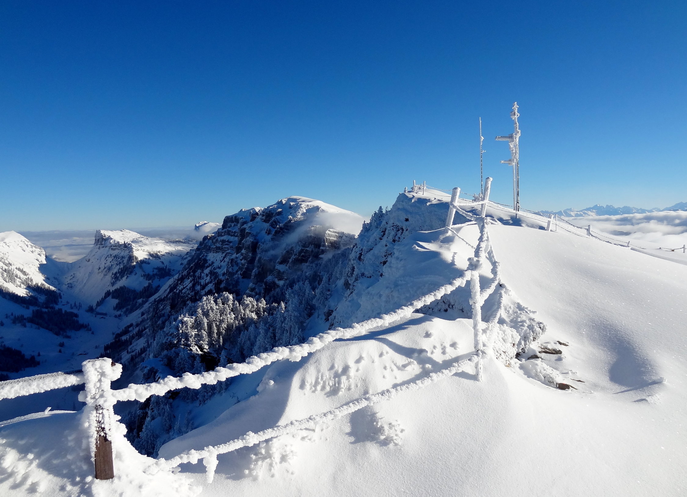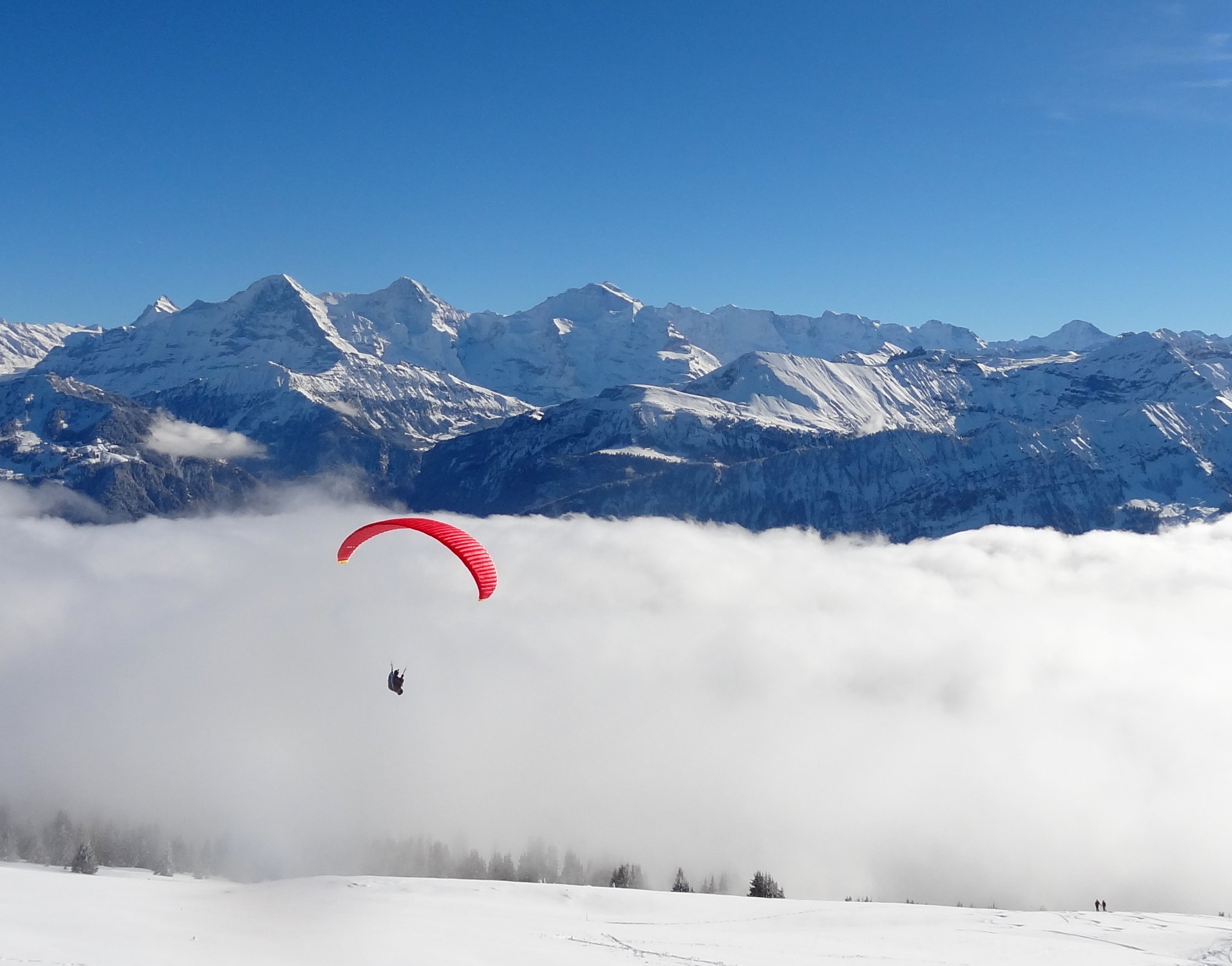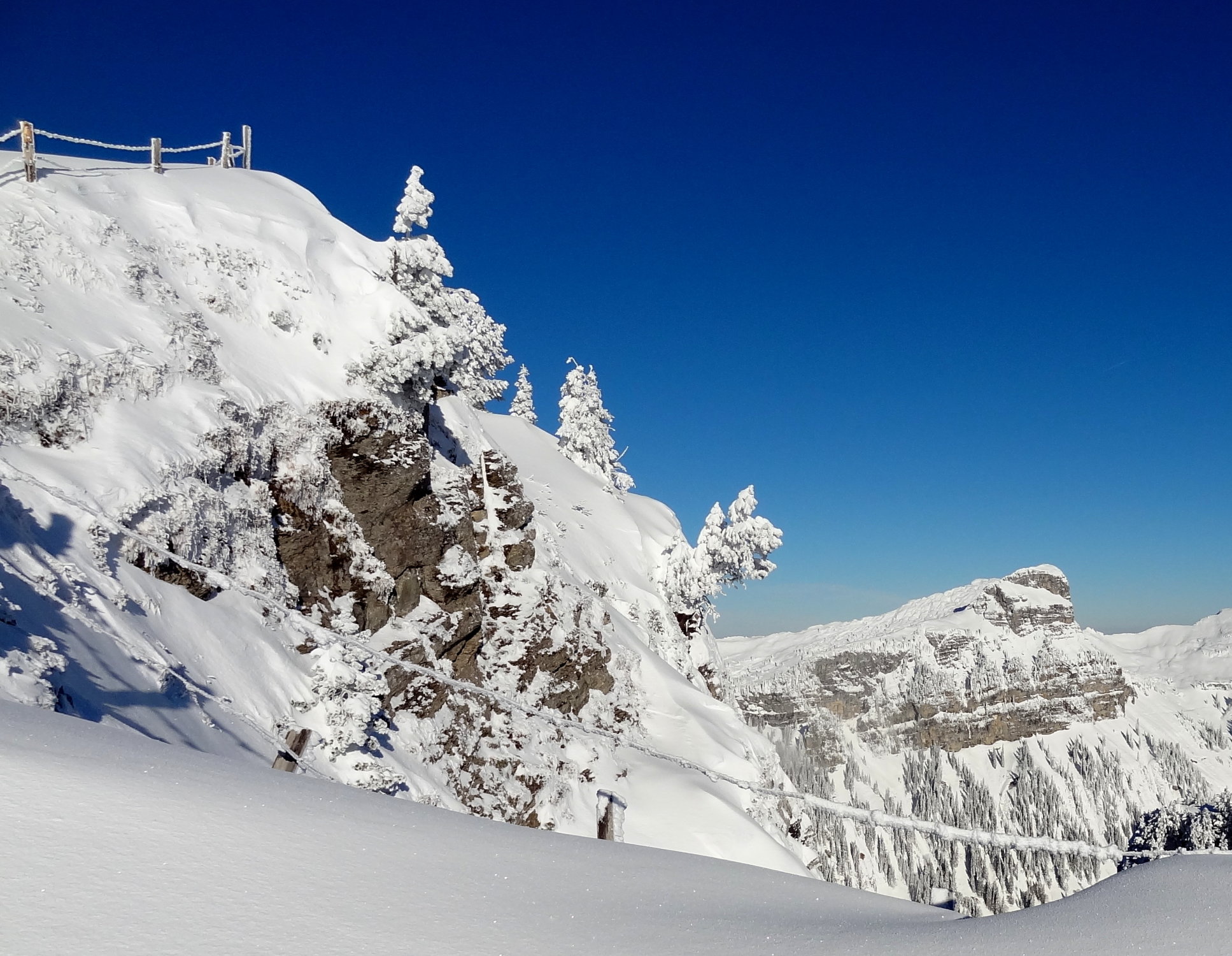 Das Niederhorn ist, nach einem Schneefall, immer eine dankbares Ziel. Gut mit ÖV erreichbar und mit einer Anzahl an Möglichkeiten für jeden Geschmack. Sind die Verhältnissen oder das Wetter nicht gut, kann man problemlos mit der Bahn wieder hinunterfahren. Dies dachte ich heute, als ich den vielen noch ungespurten Schnee sah. Also los mit Spuren bis zur Abzweigung beim Sesseli und dann überlegen. Beim Sesseli war der Schnee wie üblich sehr tief, da ging es nur im Geländegang. Weiter oben beim Grat, als ich überlegte allein geht es nicht, also Pause, fotografieren und dann zurück, tauchten zwei Schneeschüeler auf, Vater und Sohn. Sie übernahmen den zweiten Teil der Route und machten, scheinbar mühelos, eine wunderbare Spur bis zum Gipfel. Das nennt man Glück haben. Dankeschön.