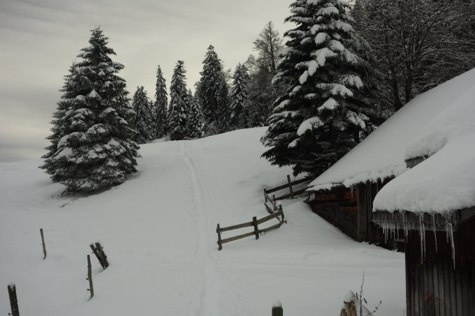 Wird mit der Wärme im unteren Teil wohl bald ausapern, ab ca. 1200 m gute Unterlage für kommende Schneefälle.
