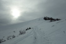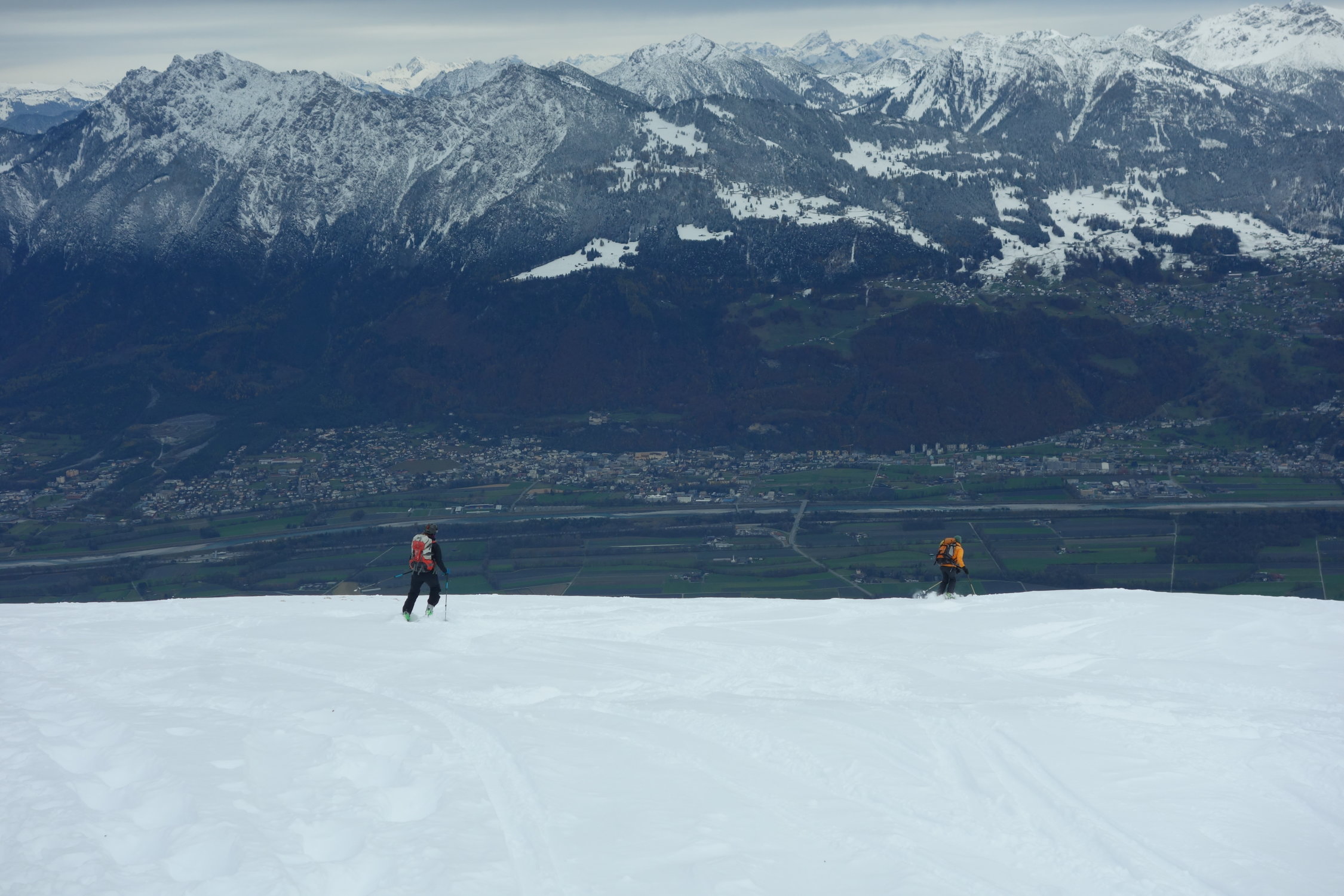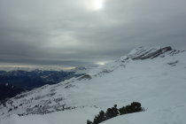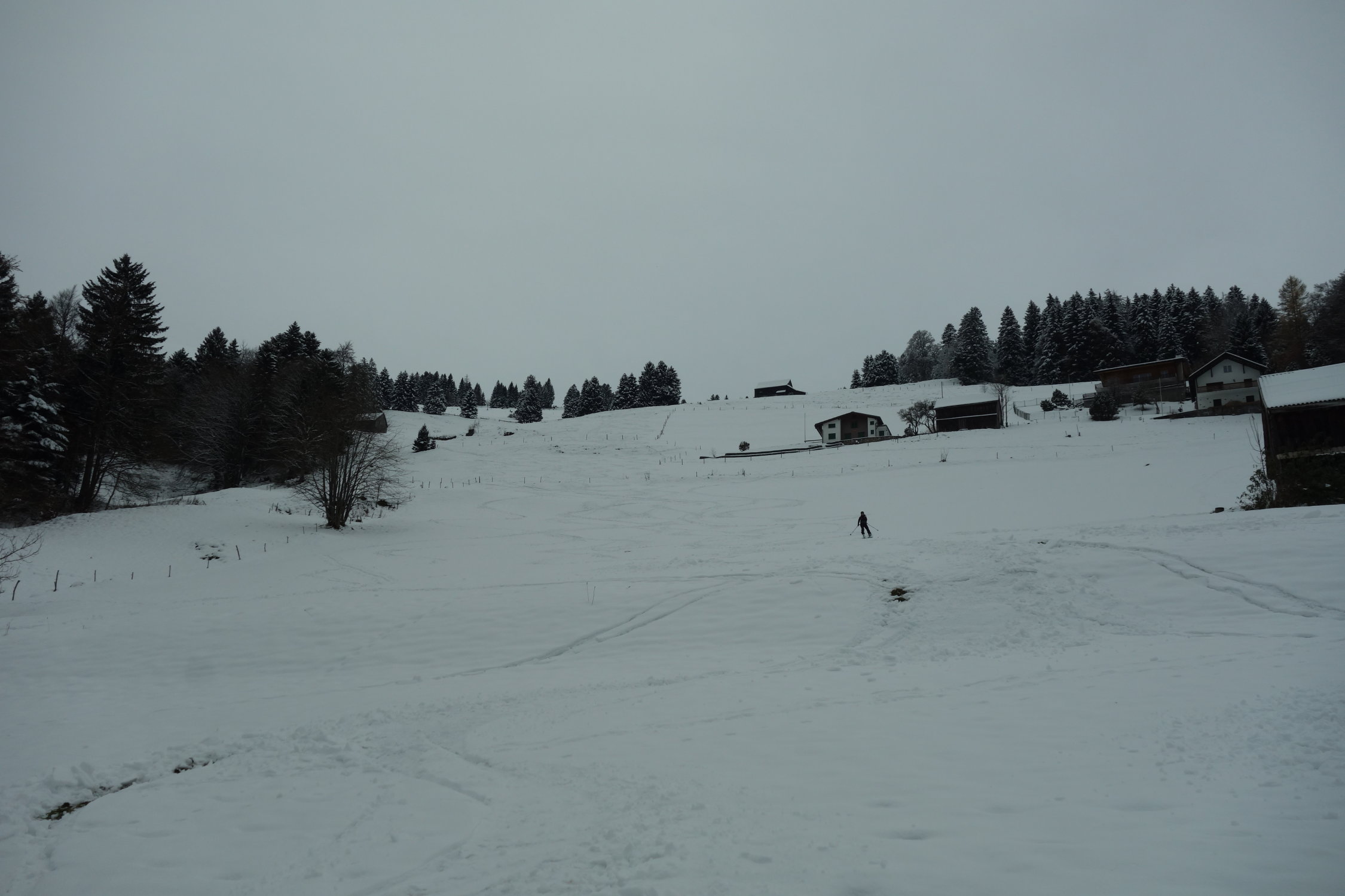 Von Hüseren bei ca. 10 cm Schnee direkt mit Ski aufgestiegen, ab 1200 m ca. 40-60 cm Schnee ohne Unterlage. Abfahrt vom Gipfel über den Rücken bei nahezu pulvrigen Verhältnissen, ab ca. 1500 m feuchter, auf den unteren Wiesenhängen wie aufgefirnt - verschiedenste Schneearten schon Mitte November - was will man mehr zum Saisonstart?