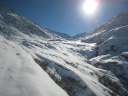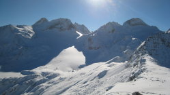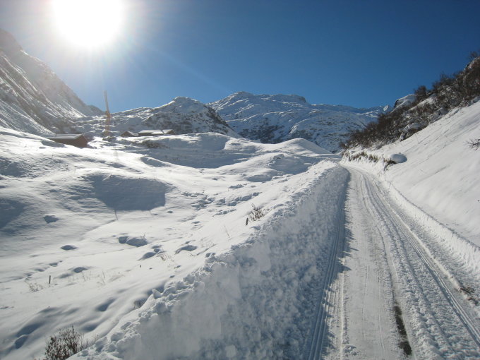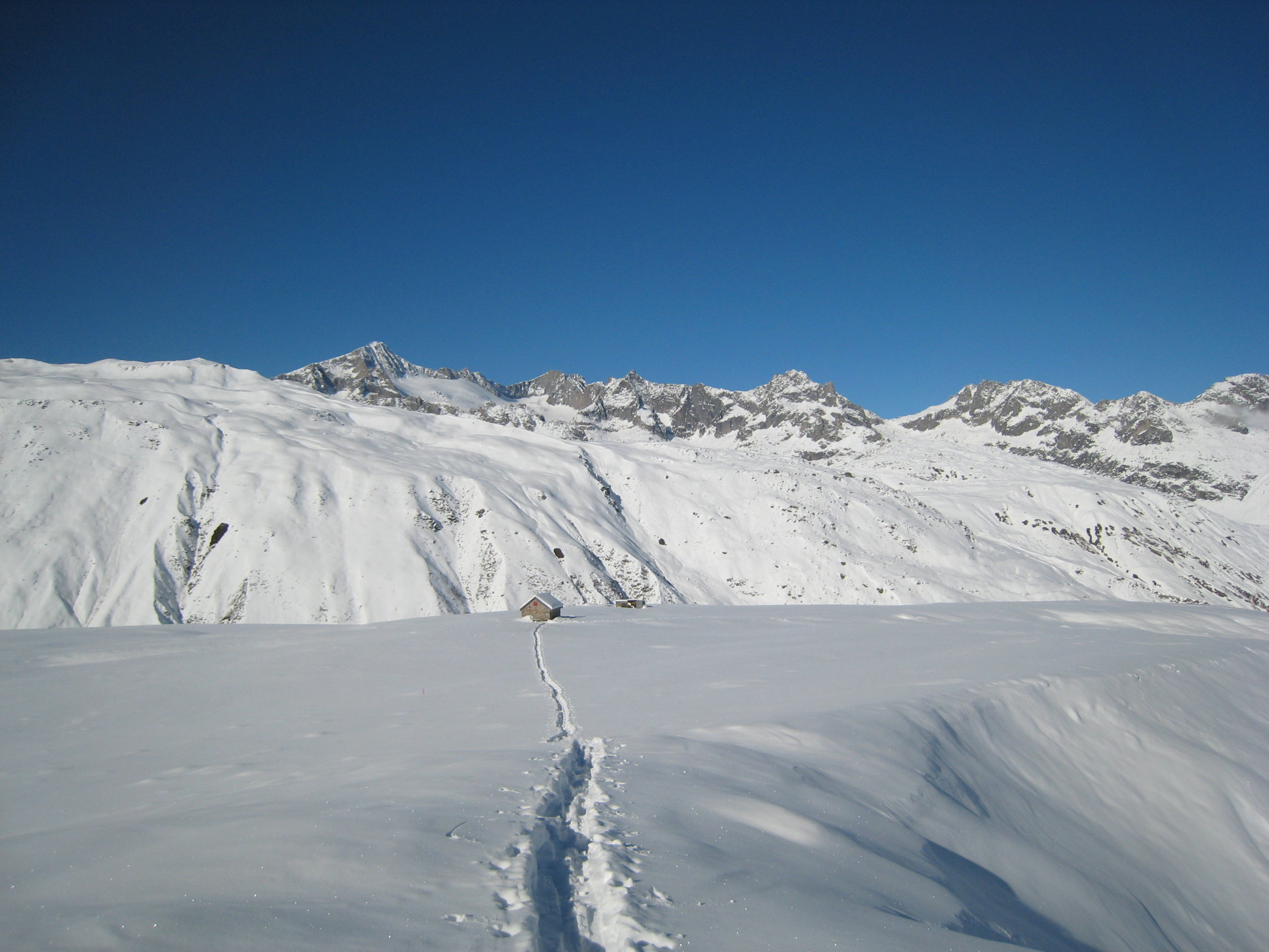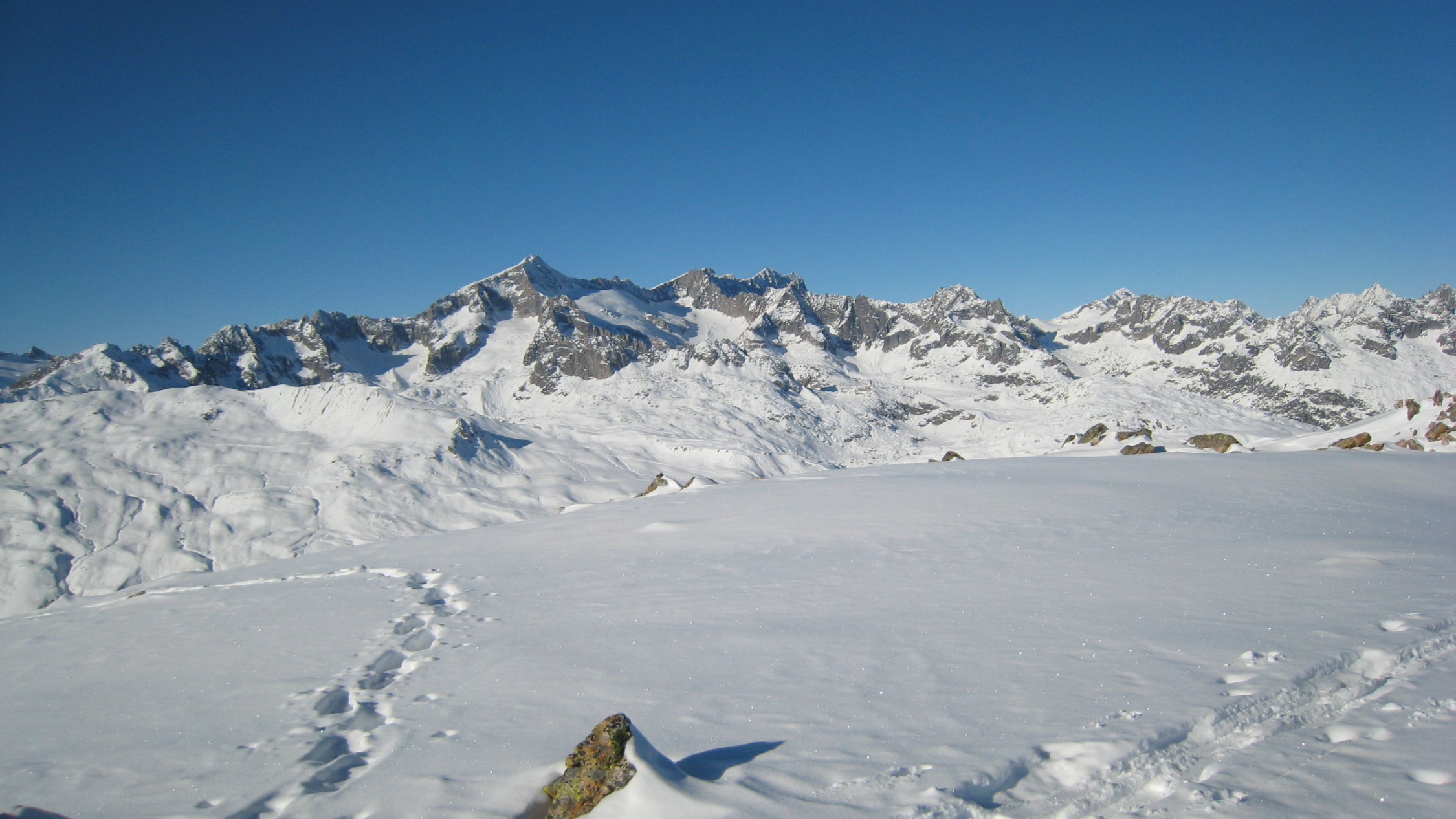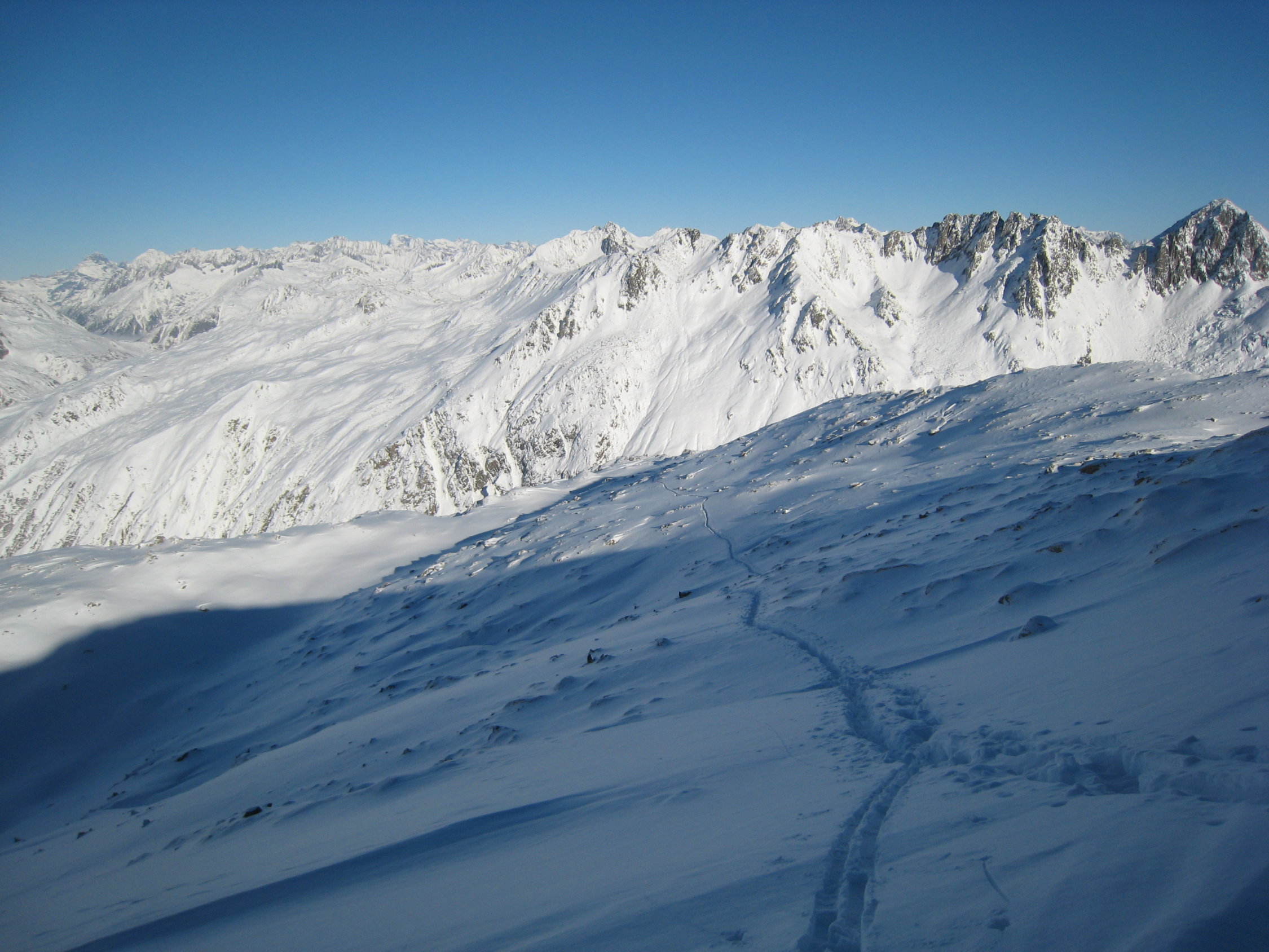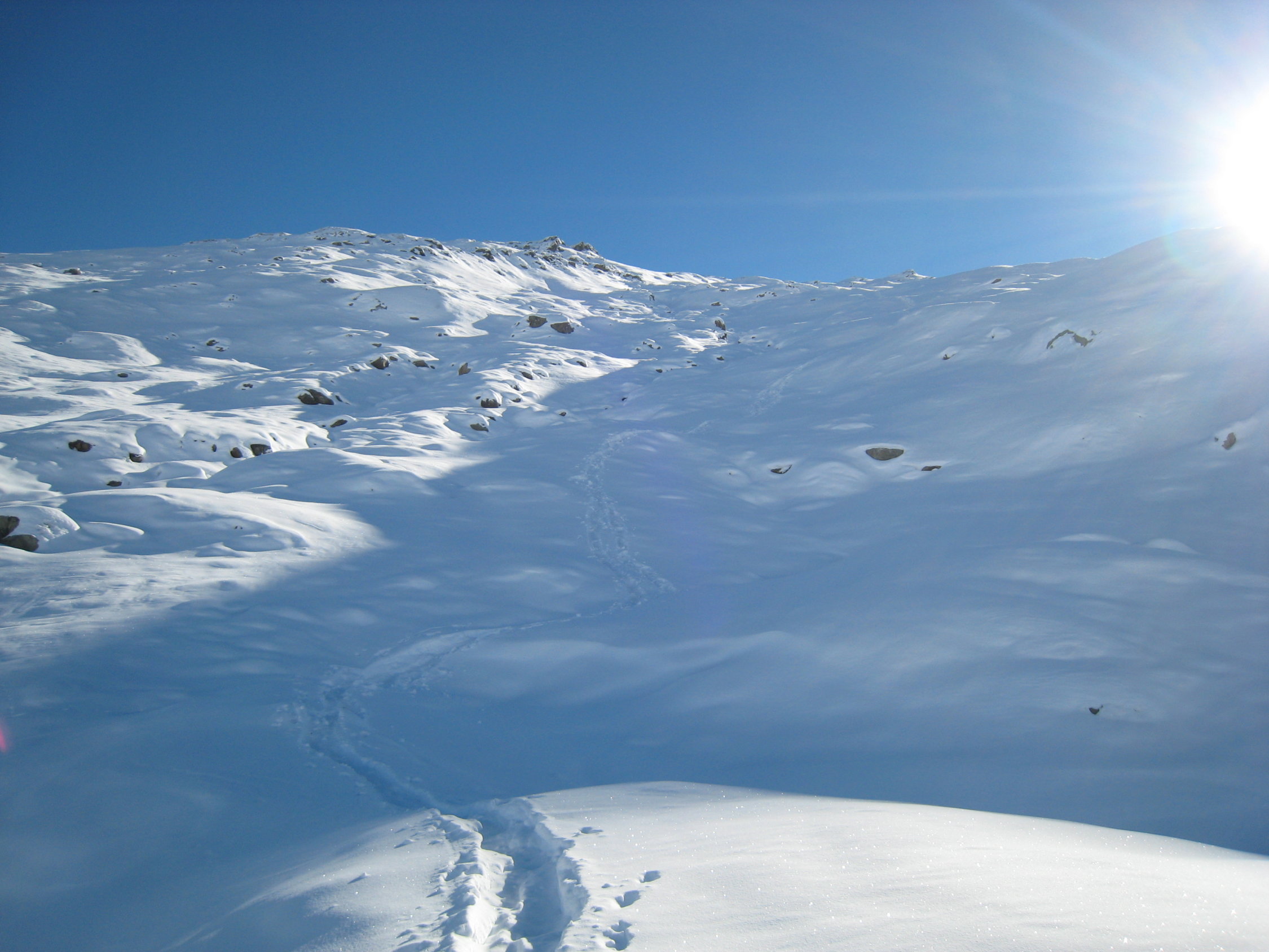 Erst das Gute: Wetter war super! Start -9°C um 10h30, Gipfel so in etwa dasselbe, dazwischen gefühlt wärmer. Nur mit dem Schnee, da hat's Frau Holle nicht so wollen, allgemein nur so 30-60cm Schnee ohne Unterlage. Allerdings feinster Pulver! Je höher, desto weniger irgendwie. Steinski wären heute "die" Wahl gewesen. Die Strasse ist erstmal schwarz geräumt bis Schweig (1739m), bis dahin heisst's Ski an, Ski aus oder Felle/Skier ruinieren. Sommerweg nun auch gespurt bis P.1967. Am Rotgand der Südosthang ist nach der Sonneneinstrahlung gedeckelt. Ab Stelliboden nun auch eine Skispur auf den Gipfel, einzig der **** Bach nervt bei so 2340m, ist nicht so recht passierbar und führt zu einer Umgehung westseitig (siehe Bilder). Oben dann nur noch so 15-20cm Schnee...oh je! Richtung Rotondohütte ging auch eine Spur, ebenso von dort ein bisschen weiter, k.A. wohin.