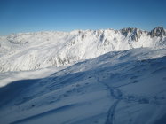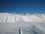 Nach den Einträgen vom Stotzigen Firsten dachte ich eigentlich, dass das "die Wahl sei" und ebenso, dass das gute Stück gespurt sei...beide Male falsch gedacht. So nah liegen Glück und Pech beieinander. Sommerweg jetzt allerdings eingespurt. Dann ab P.1967 kamen Spuren von fünf Tourlern, aber nur bis kurz vorm Stelliboden. Ein oder zwei (konnte das nicht so erruieren) Schneeschuhgeher sind allerdings ziemlich gradaus hochmarschiert - Hut ab, das war sicher kraftraubend! Und die Art der Fortbewegung sowohl rauf wie runter definitiv für den Gipfelhang die bessere Wahl. Trotz sehr defensiver Fahrweise haben die neuen Ski (nach der positiven Erfahrung vom Samstag) nun einen exzellenten Steinkantenschliff...