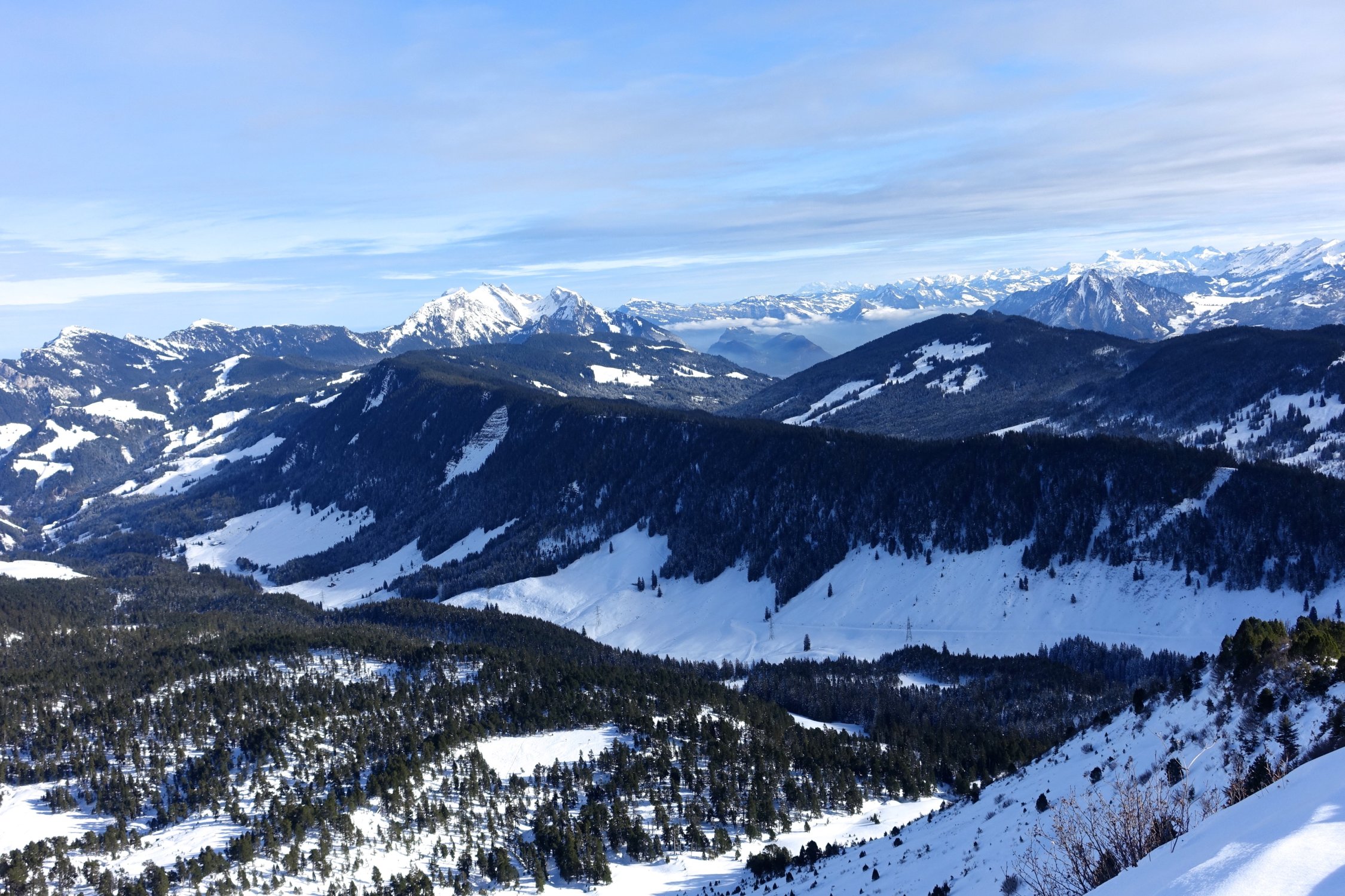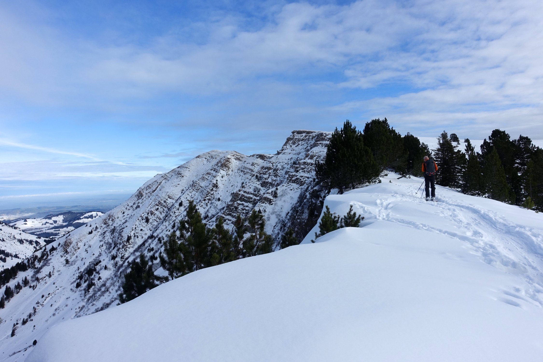 Vom Langis (PP) zum Glaubenbergpass und via Alp Rick und Rickhubel über ENE Grat auf den Fürstein Vom grossen (gebührenpflichtigen-) PP beim Langlaufzentrum Langis der Passstrasse entlang zum Glaubenbergpass. Westwerts zuerst über lichten, stellenweise steilen Wald via Rick auf den Rickhubel, 1943 m mit wunderbarer Rundumsicht. Über den breiten Kamm, oder wenig südlich davon, in den Sattel (1885 m) am Fusse des Gipfelaufschwung des Fürstein und dem bis 35° steilen Grat oder Gipfelhang hinauf zum Gipfelkreuz.