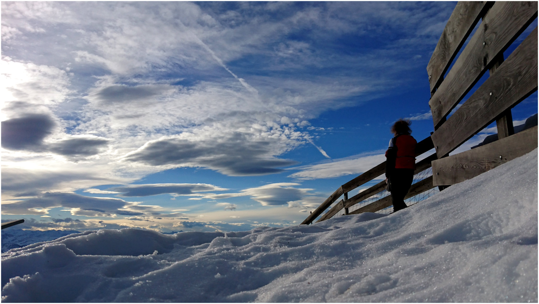 Wunderschöner mollig warmer Nachmittag. Tolle Föhnstimmung mit Wolken, Sonne und traumhafter Beleuchtung bei der Abfahrt.