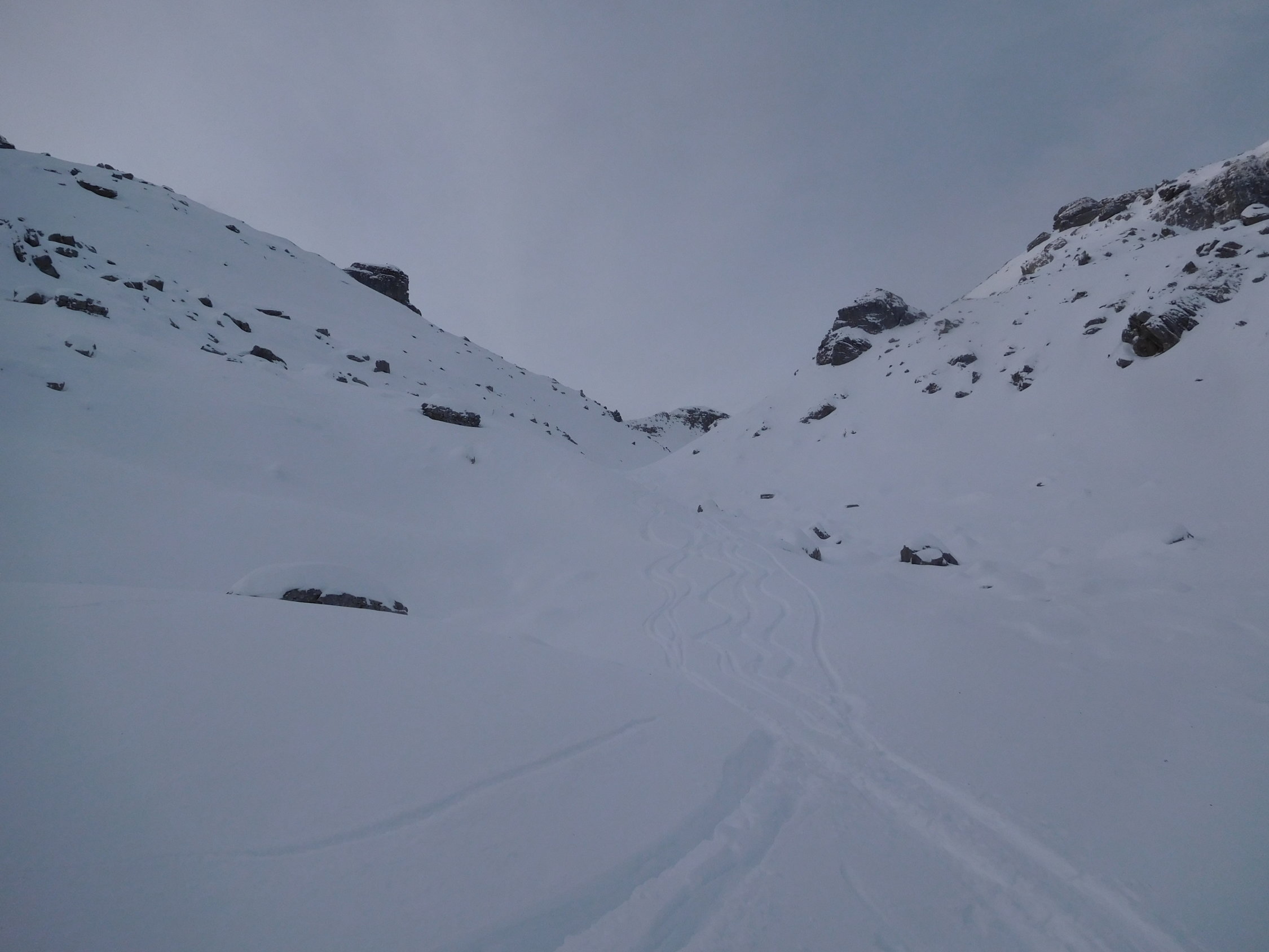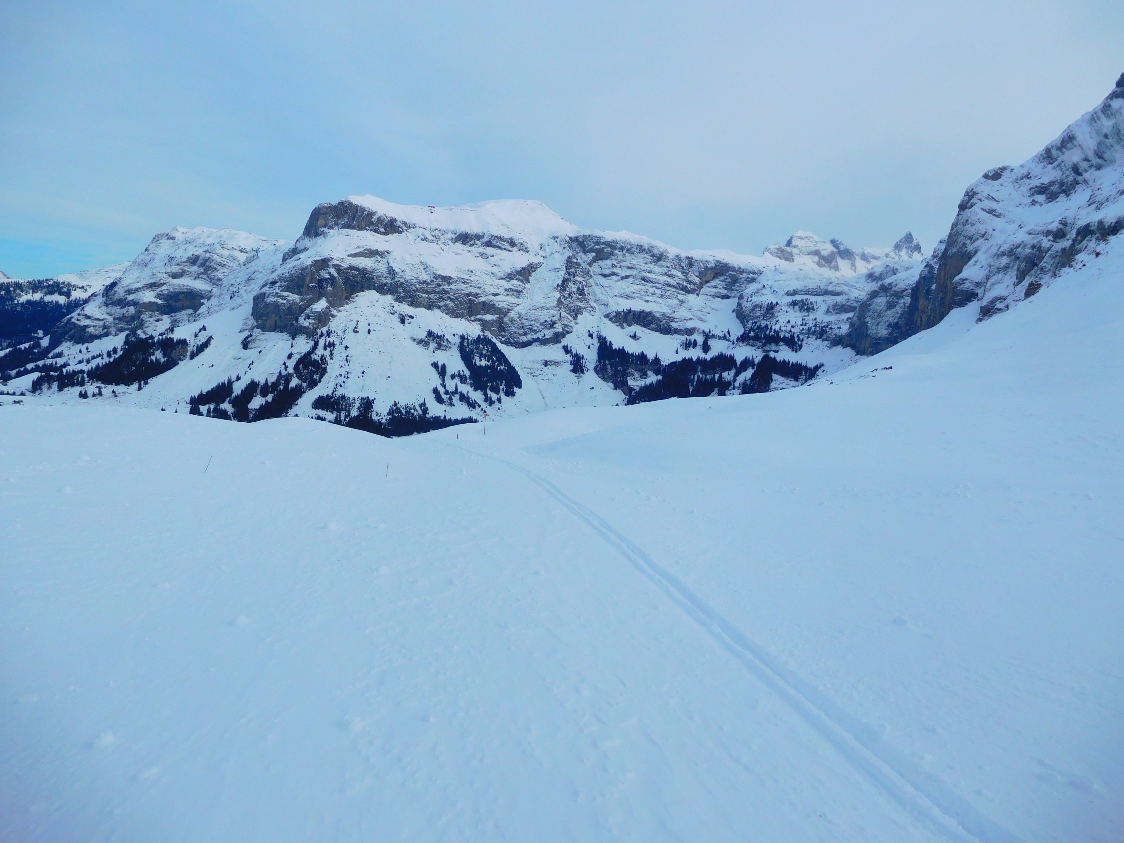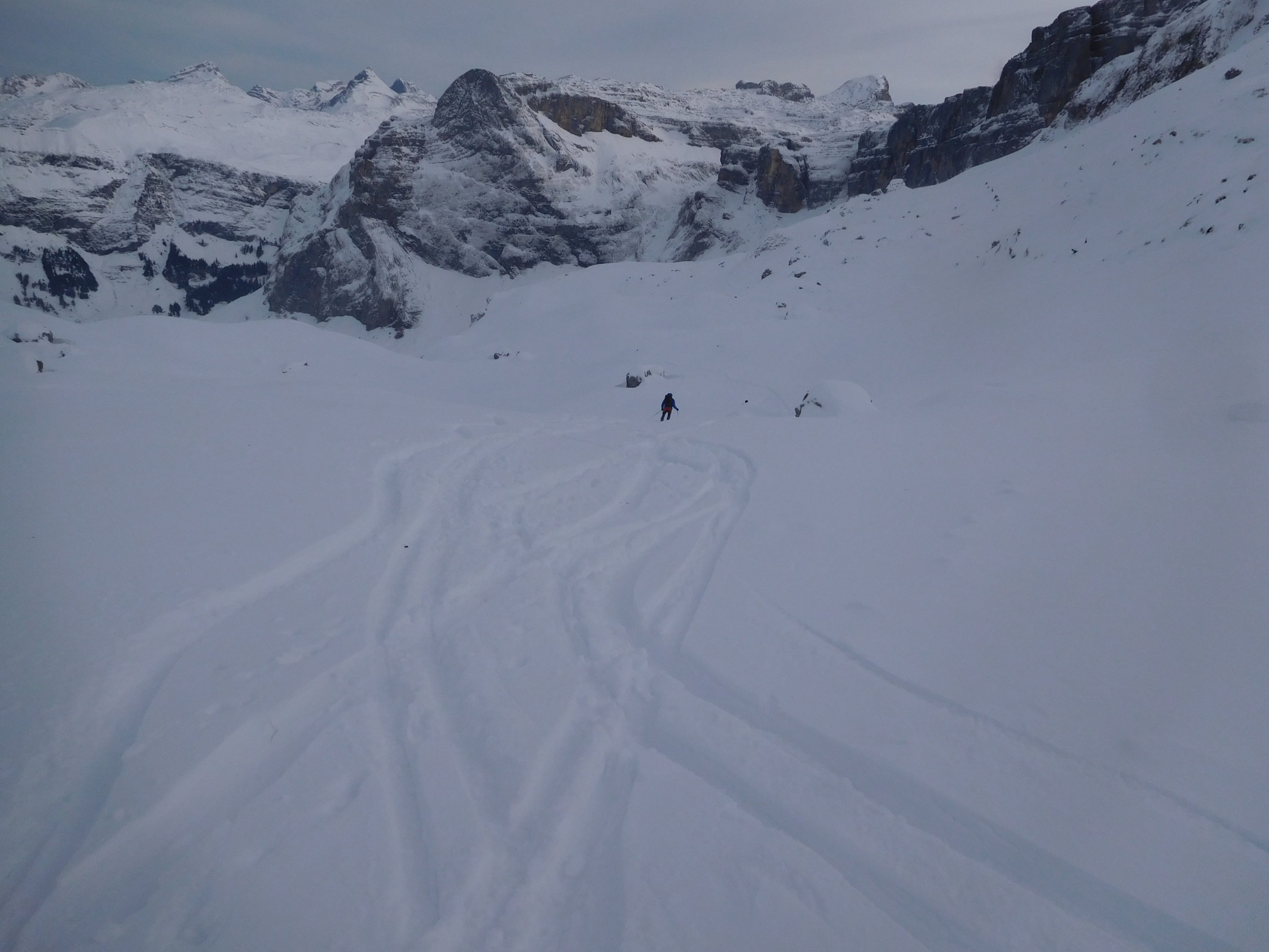 Start der Tour am 7.50 Uhr beim Sahli, durch den Ruosalperwald in Richtung Ober Stafel, schon bald gabs lästige Stollen ein Fellwechsel war nötig, der Föhn machte sich bemerkbar mit kräftigen Böen, nach den Muggen Bändern wieder Windstill,nach Wächters Butzen schöner Pulver Schnee bis Balmergrätli, der Altschnee hatte sich gut gesetzt, Abfahrt zuerst auf Aufstiegsroute dann nach Muggen Bändern nach Westen zur Ruosalper Culm Route ,weiter via Alpstrasse zum Sahli retour ohne grösseren Steinkontakt, dank den 10 - 20 cm Neuschnee vom Vortag eine gelungene Skitour.