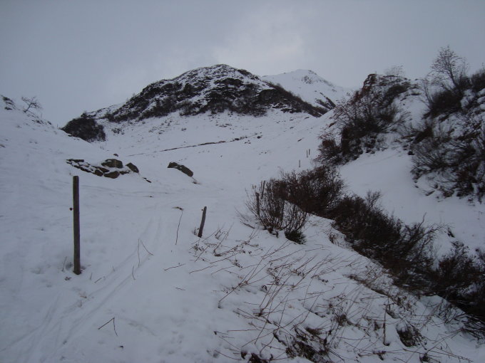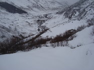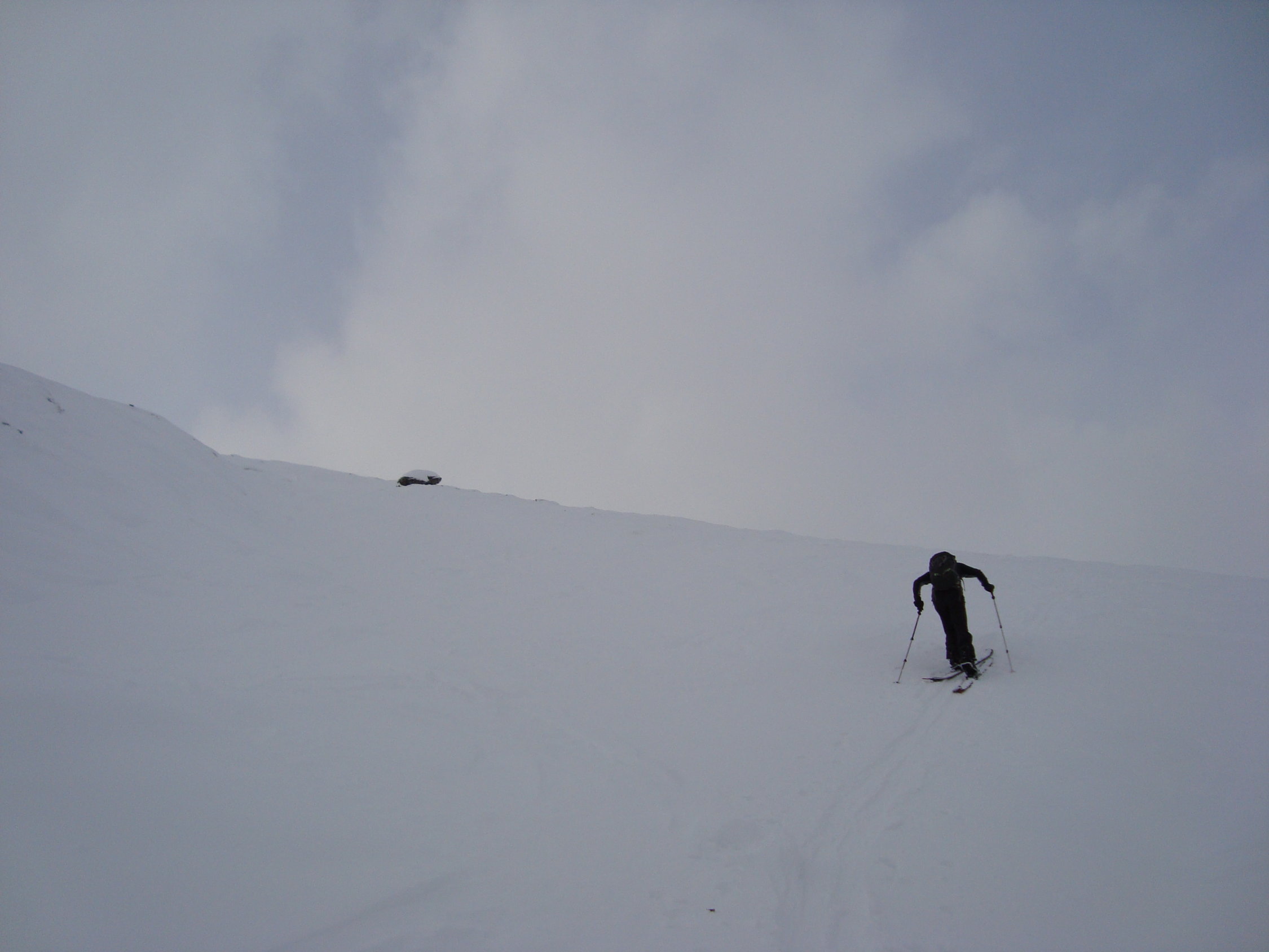Um es vorweg zu nehmen- es hat noch nicht viel Schnee im Gebiet. Allerdings ist schon eine zum Teil recht gute Unterlage vorhanden. Der erste Hang bis zum Flachlauf vor Deieren ist noch recht mit Steinen gespickt. Oberhalb der Traverse nach Laubgädem ist auch noch sehr viel Strauchwerk vorhanden.