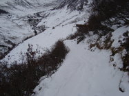 Wie schon in früheren Einträgen zu entnehmen war, müssen die Ski bis zum Einstieg bei Laubgädem getragen werden.