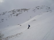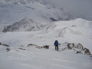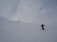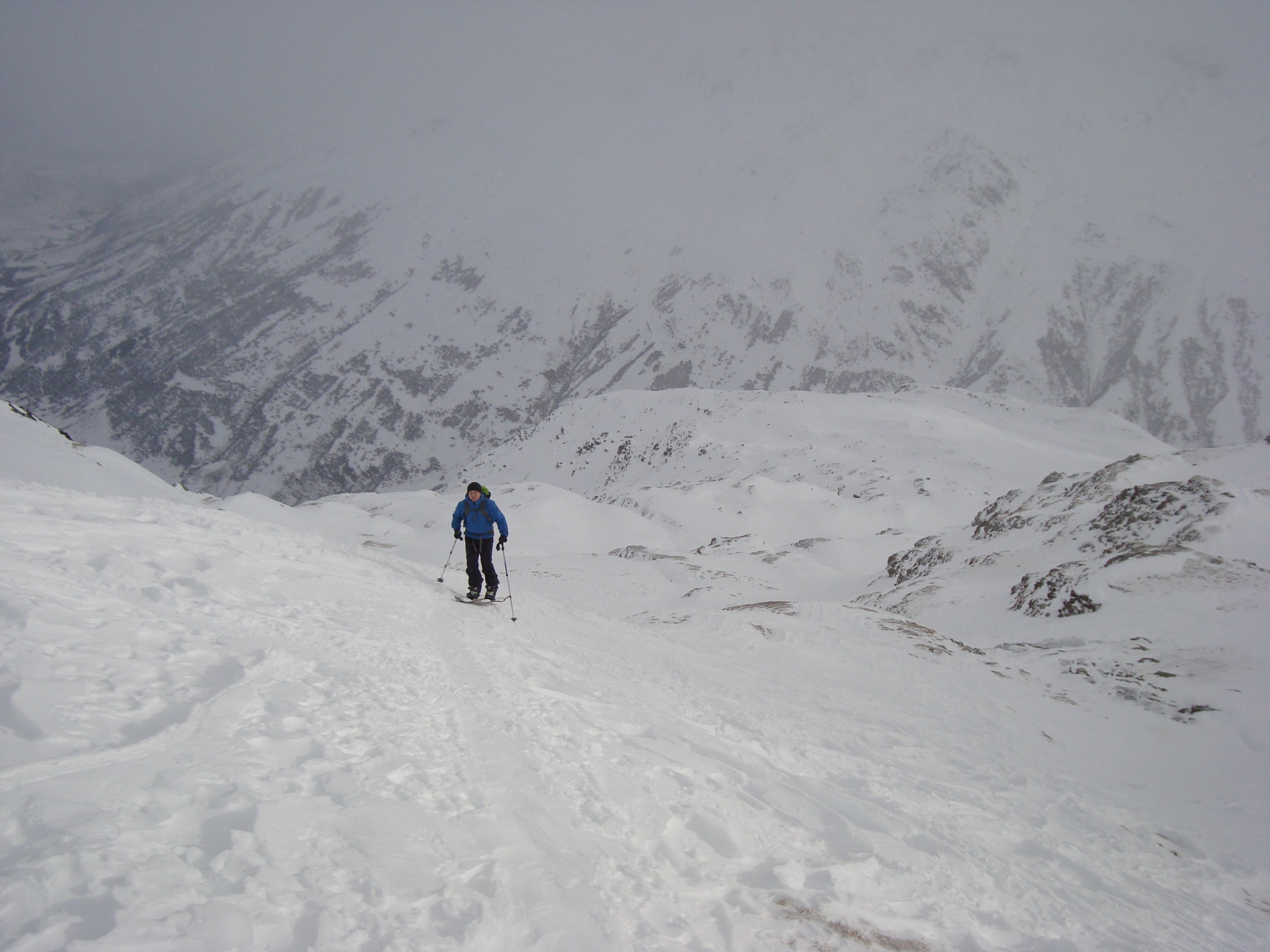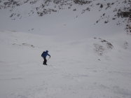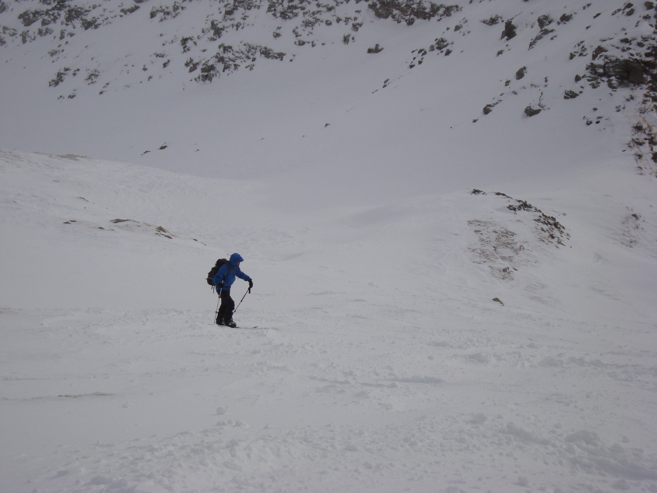 Insgesamt hat die Qualität des Schnees durch Wind und eventuell Regen sehr gelitten. Unterhalb Deieren- mal Harsch, tragende Kruste und mal mit Triebschnee eingewehte Mulden.