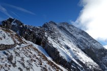 Ab Vorstegg dann z.T. recht heikel, da stellenweise sehr steil und harter Schnee. Ich hatte die Steigeisen dabei und benutzte diese bis auf den Gipfel und zurück zur Vorstegg. Ab etwa 2100 M. auch ein Schäumchen Neuschnee. Im Gipfelbereich z.T. recht tiefer Pulver.