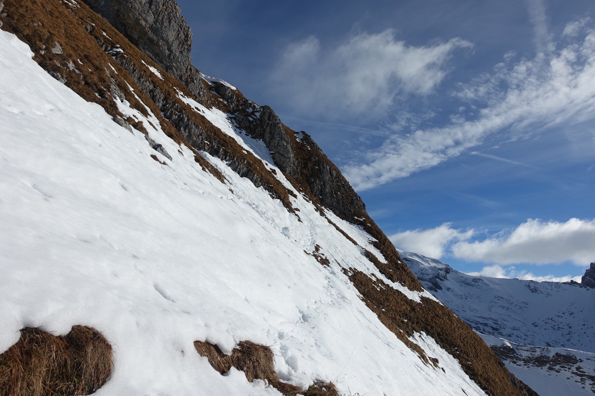 Bis Ober Wend kein Schnee und die Wege Dank des vorangegangenen Föhn recht trocken. Ab Ober Wend (1935 m) praktisch durchgehend Schnee, bzw. harter Firn, welcher ein zügiges Vorwärtskommen ermöglichte.