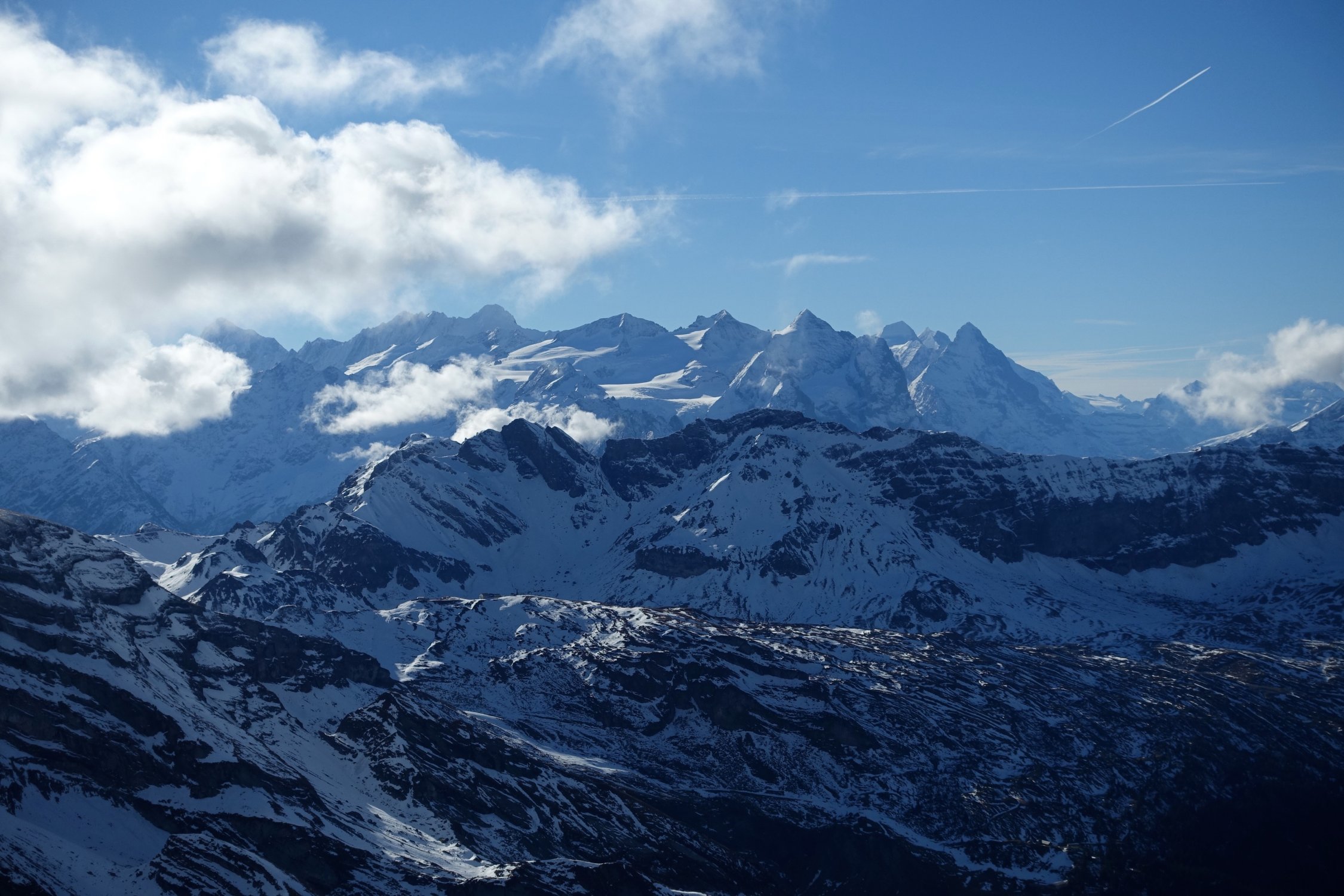 Am Morgen hohe Bewölkung, z.T. sogar Schneefall. Dann wechselten sich Aufhellung mit wunderbaren Wolkenspielen und Nebelschwaden immer wieder ab.