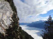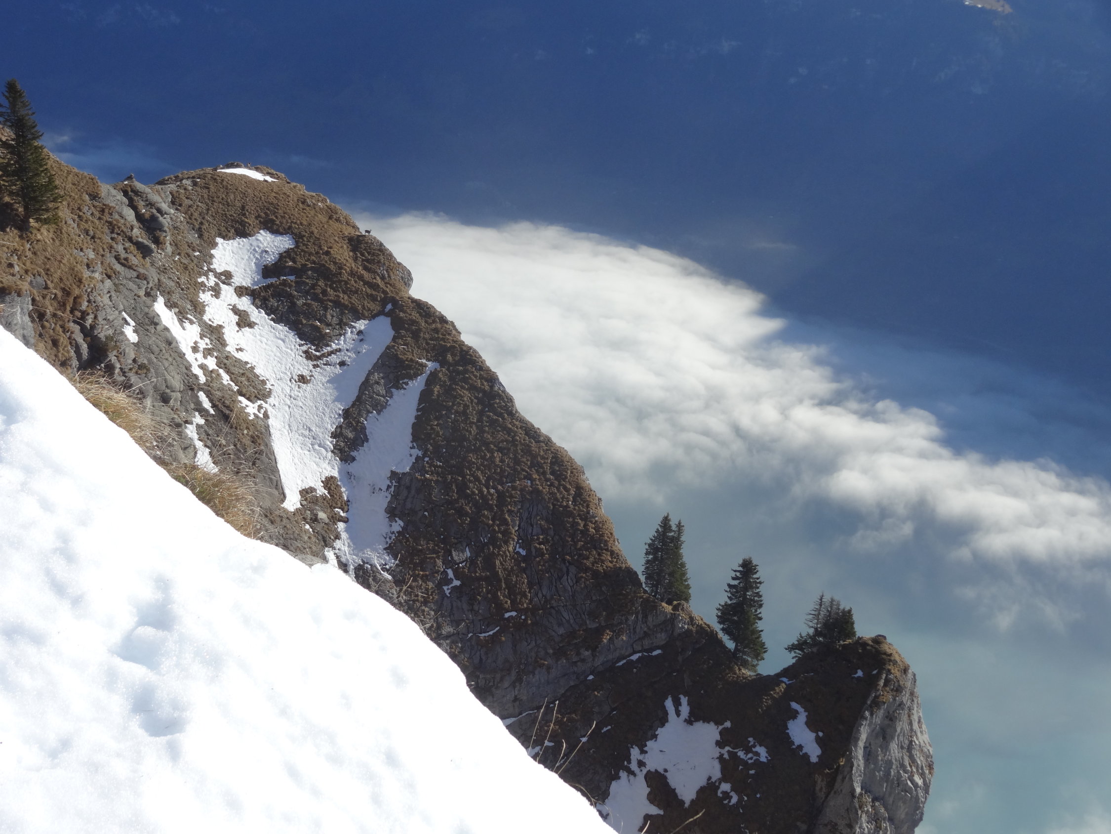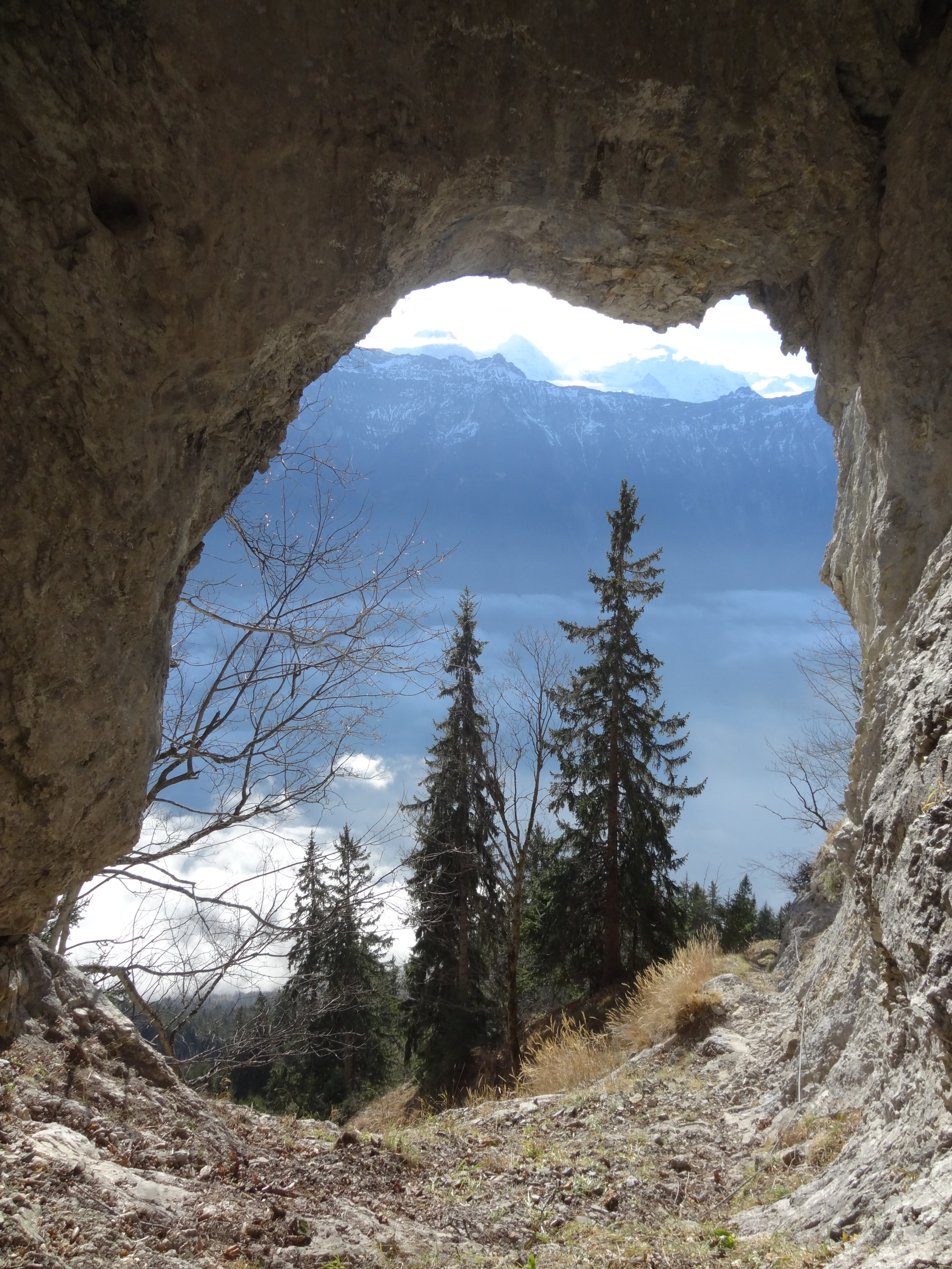Weitgehend schneefrei und unheikel, In Ringgenberg zu Beginn (8:45 Uhr) Nebel, der sich bald auflöste. An Pt. 1379 unterhalb des Graaggetors im T-Shirt Znüni gno. Der Durchstieg durch das Graaggetor ist schon hübsch. Der Felsriegel scheint erst kompakt, bis man diesen praktischen Durchstieg sieht. Auch beim oberen Felsriegel ein hübscher Durchstieg.