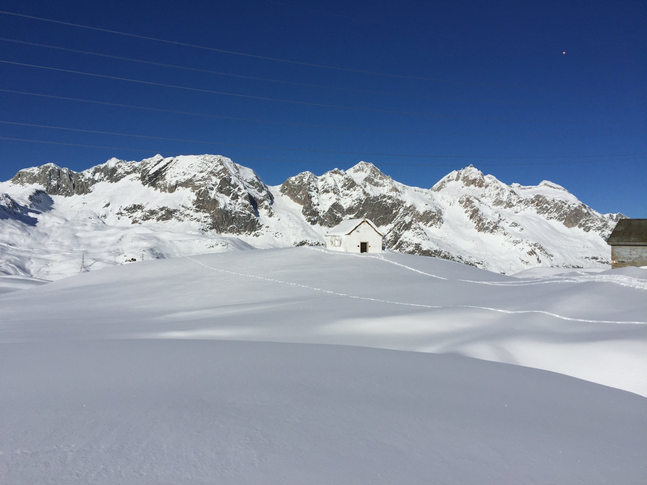 Ski koennen nach der Bruecke angeschnallt werden. Aufstieg alles mit Ski. Bin dann zuerst am Pizzo Grandinagia gewesen. Dort oben durchgaengig Pulver. Danach zum Helgenhorn. Aufstieg problemlos. Super Wetter und Aussicht. Recht warm. Die Abfahrt ist jedoch langweilig (solange man nicht zur Passstrasse runterfaehrt).