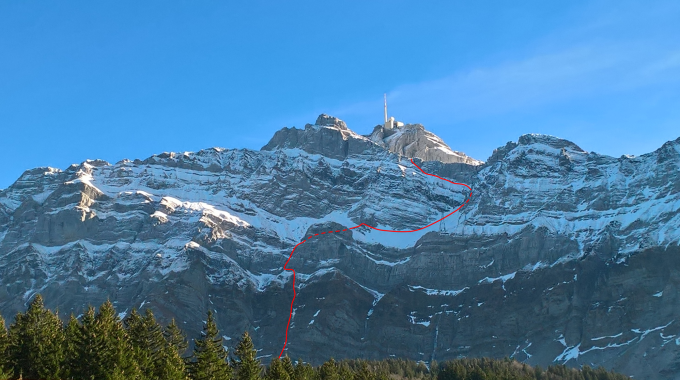 Perfekte Verhältnisse mit gefrorenem Gras im unteren Teil und Firn im oberen Bereich.