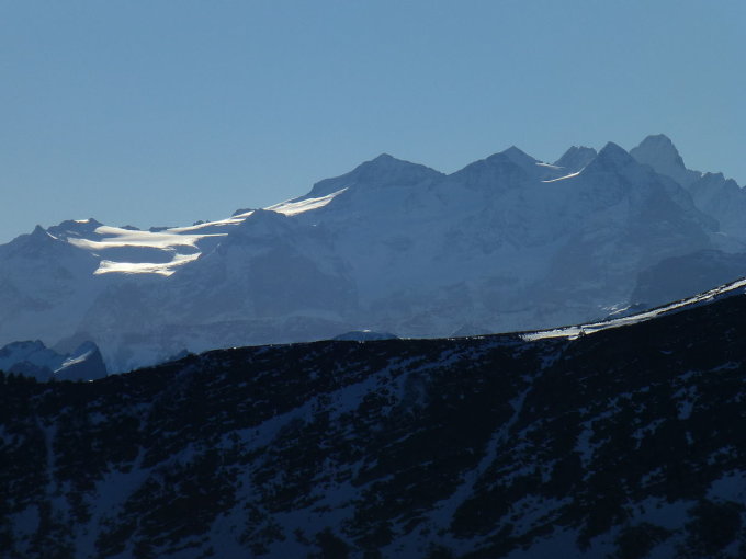 Sonnig und mild, bei W-SW-Wind auf dem Grat z.T. kühl. Grat weitgehend trocken, Richtung Flühli zunehmend gefrorene, aber griffige Schneereste, Rauhreif und z.T. Wassereis. Im Grönflue S-Couloir Vorsicht wegen Steinschlag (Gemsen!). Die Nächsten sollten ca. 1,5m Reepschnur zum Ersetzen der Schlinge beim dortigen Abseilstand mitnehmen.