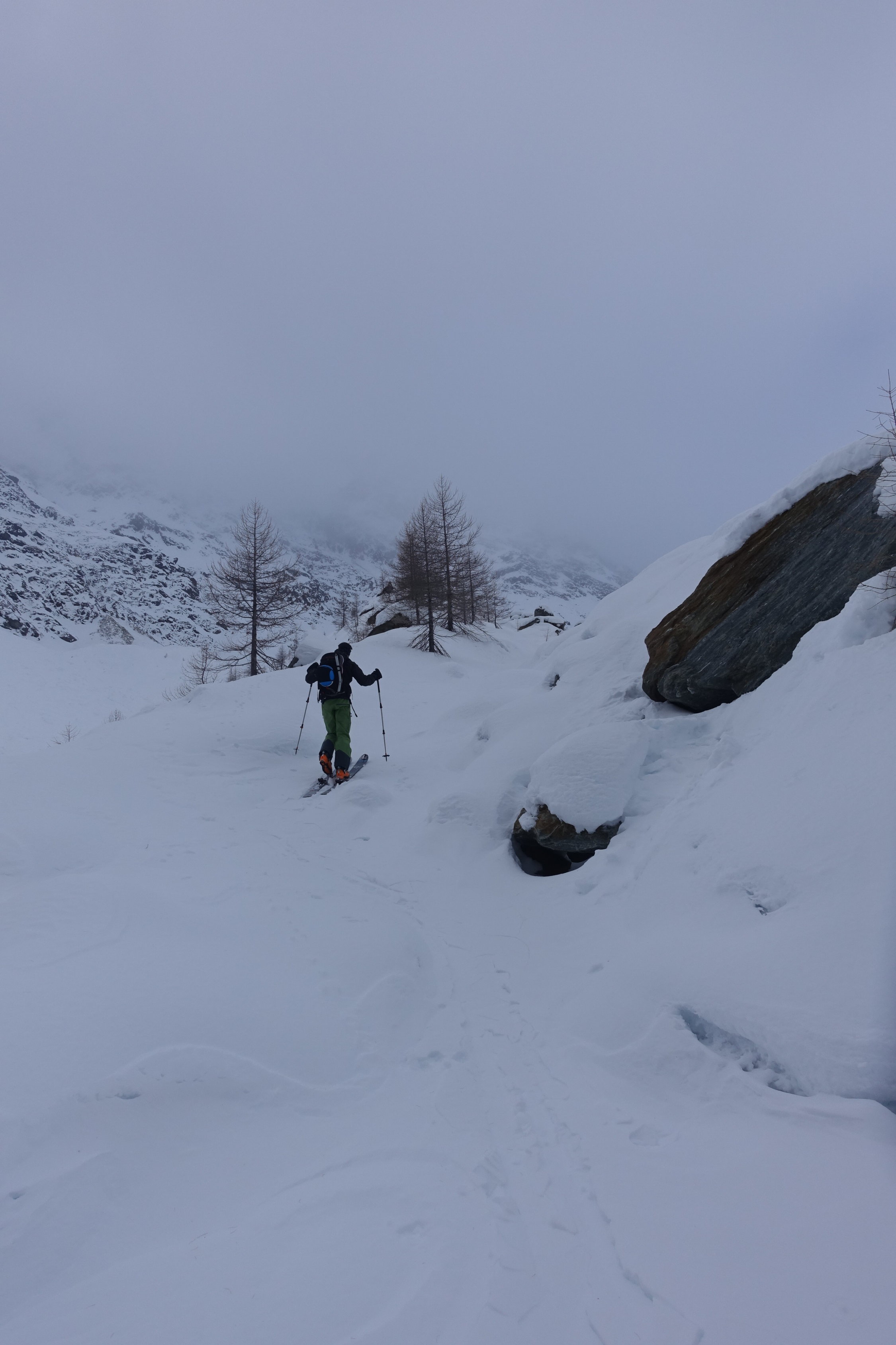 mit pw allrad möglich noch etwas strasse hoch rossbodenstaffel.ab da durchgängig mit ski.culi sehr gut eingeschneit.super trittschnee hart,stellen tiefer windgries(Achtung).sind nicht ausgestiegen wegen nullsicht und fehlender zeit(erst mittag gestartet).abfahrt oben hart griffig gut,sicht fehlte halt für spassfakor.unten raus bis pw hart gut ohne feindkontakt.