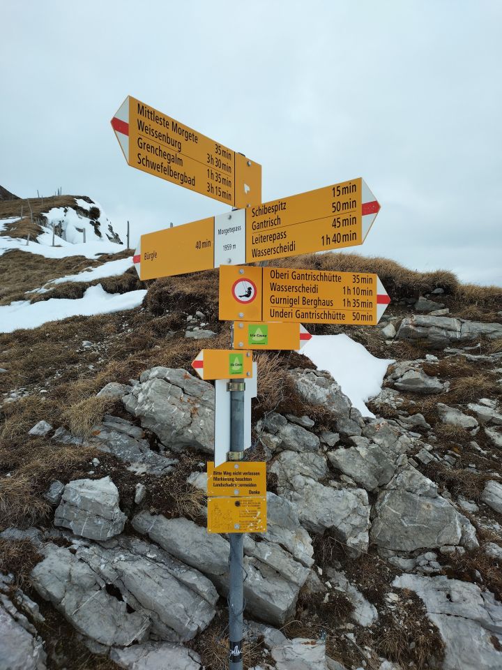 Diesmal hat es geklappt - letzten Sommer bin ich in der Mitte umgekehrt, weil mein Kopf nicht mitgemacht hatte. Jetzt fand ich die Tour anspruchsvoll, aber richtig schön. Der schwierigste Teil war der Abstieg vom Ochse, dort hat es ein paar ausgesetzte Stellen, und der Fels ist brüchig. Im Aufschwung haben wir einige Stellen für die nachsteigende Person gesichert. Wir sind von Schwefelbergbad mit den Ski aufgestiegen, und dann von der Gemsfluh via Morgetenpass zur unteren Gantrischhütte abgefahren.