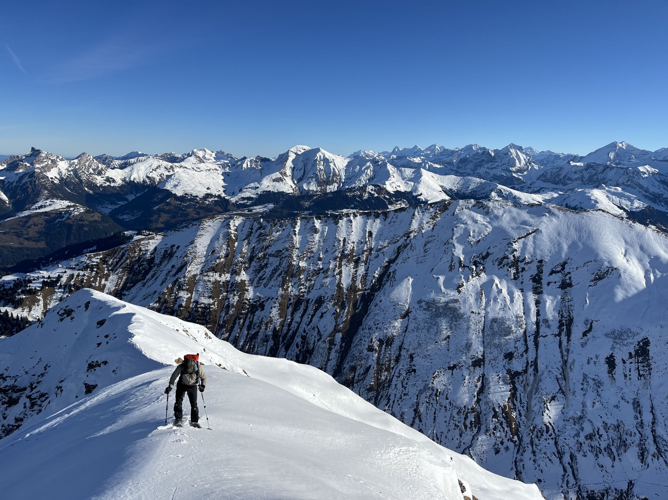 Schnee ab Turbach. Meist tragender Deckel oder Bruchharsch bis zum Gipfel. Abstieg ab Lauenenhorn über Horenegg (Skiroute), hier fast durchgehend Schnee bis etwa 1500 m. Leider aber nicht recht aufgesulzt, so dass der Abstieg zu Fuss angenehmer war.