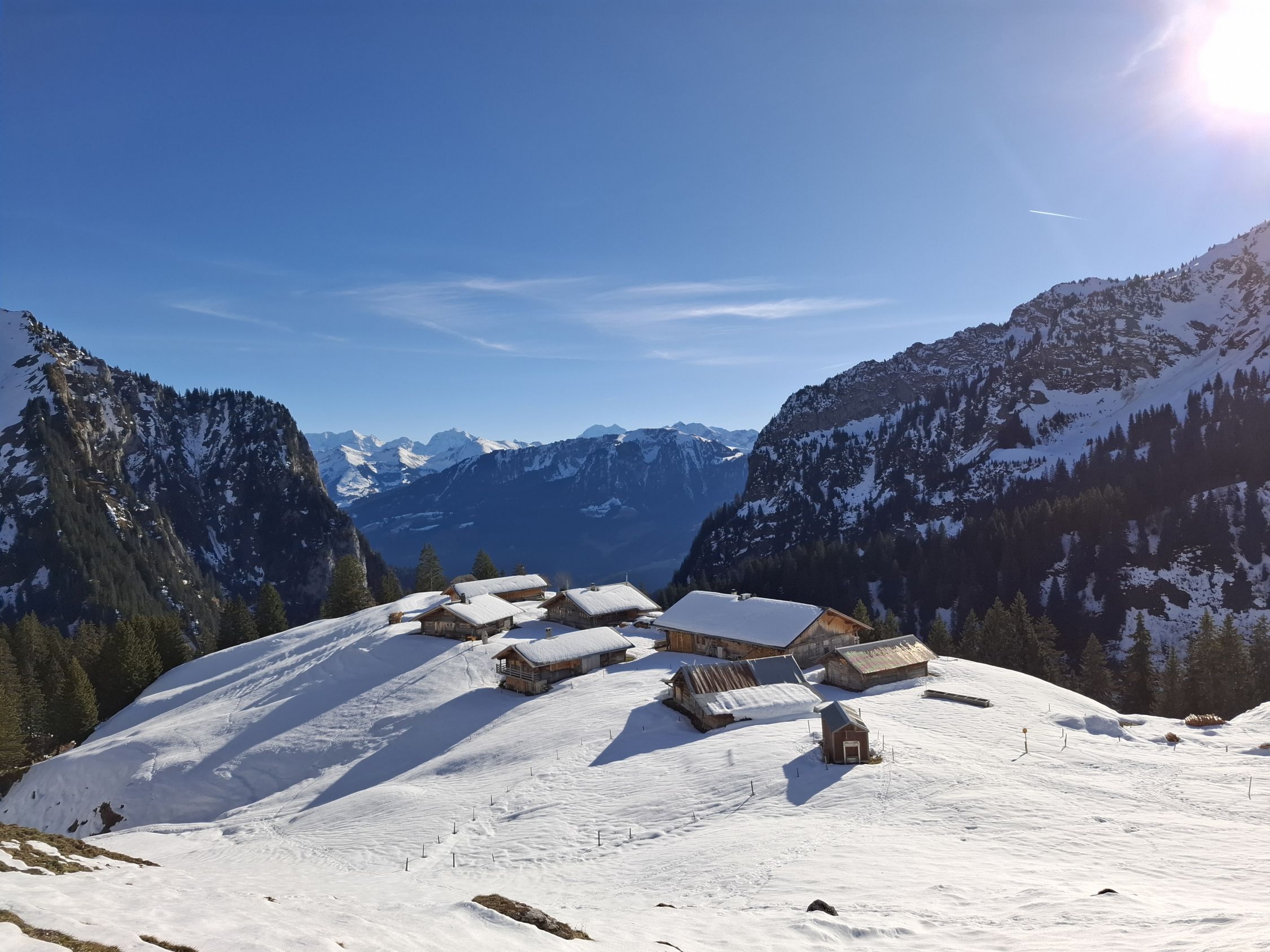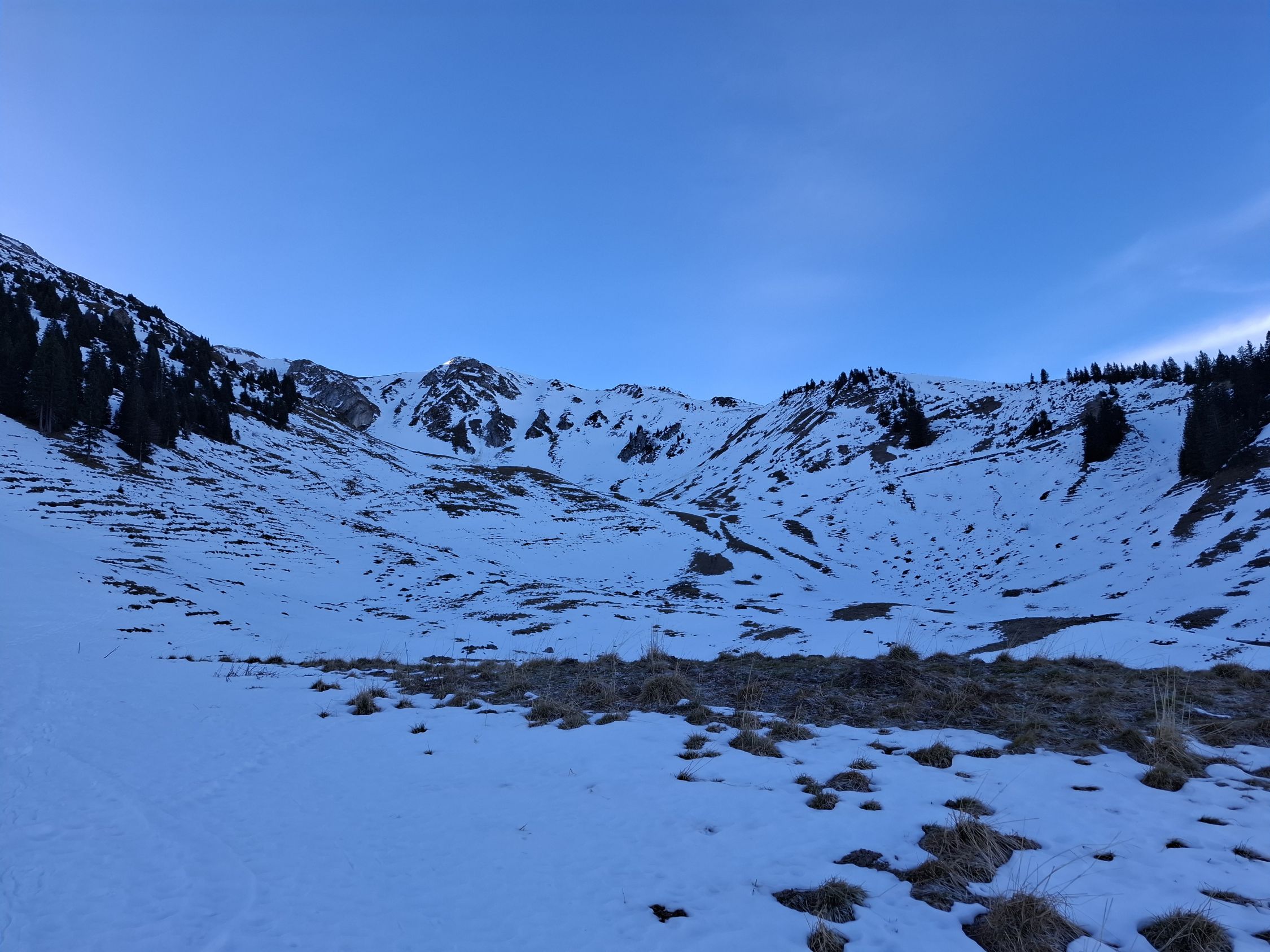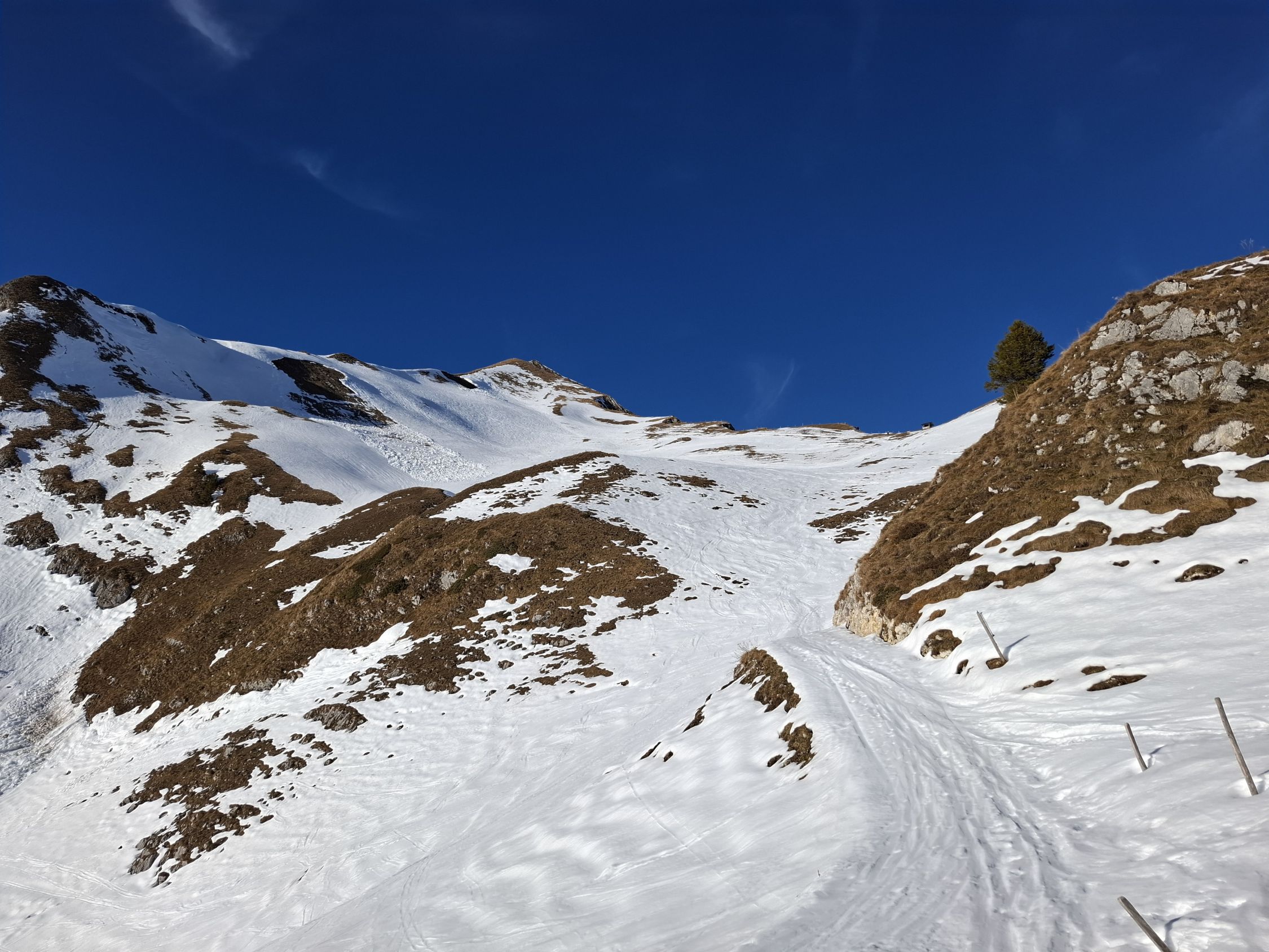 Wetter. Sonne Pur mit etwas Wind der nicht störte. Es hat nicht all zu viel Schnee im Gebiet. Im Schatten hart gefroren oder leichter Deckel. Je nach spuren sehr Ruppig. Aber wenn ohne Spuren gar nicht so schlimm.