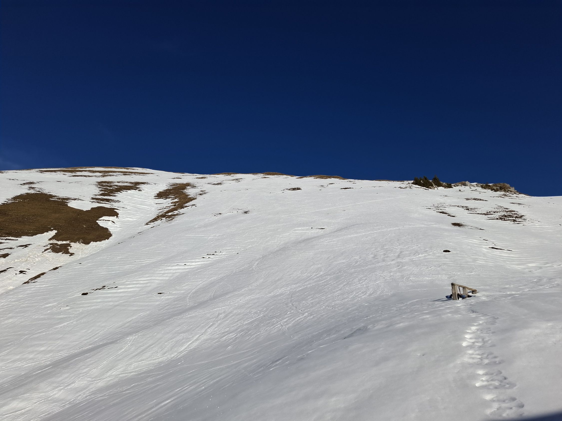 Ochsen Gipfel Fussaufstieg: nur an wenigen Stellen etwas harter Schnee.