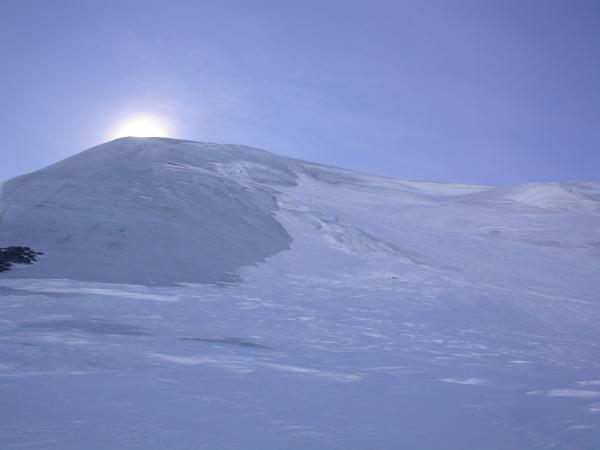 Eine Möglichkeit auf den Gipfel zu gelange besteht evtl. indem man ca. 200m westlich des Gipfels aufsteigt, da dort zumindest im unteren Teil noch Schnee liegt. Wir empfehlen die Eisausrüstung einzupacken.