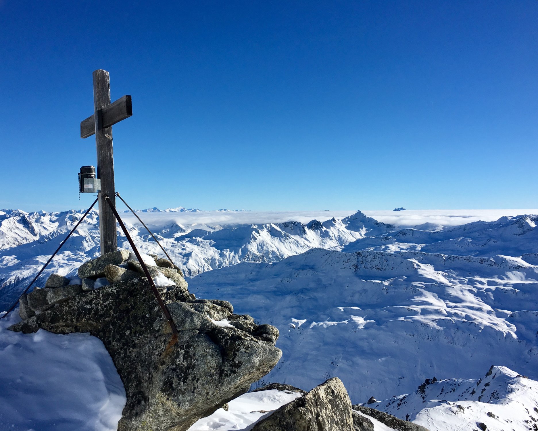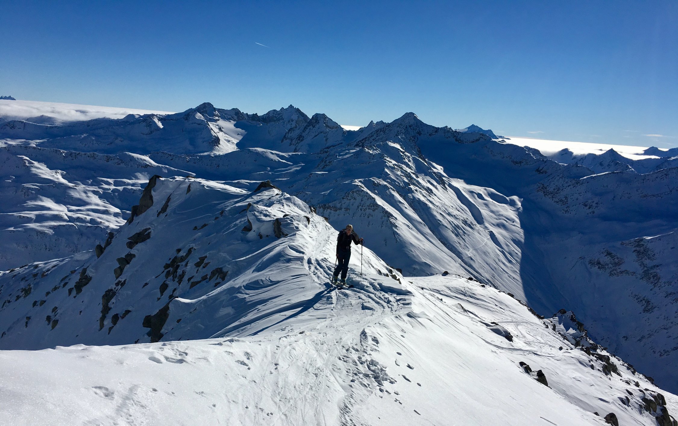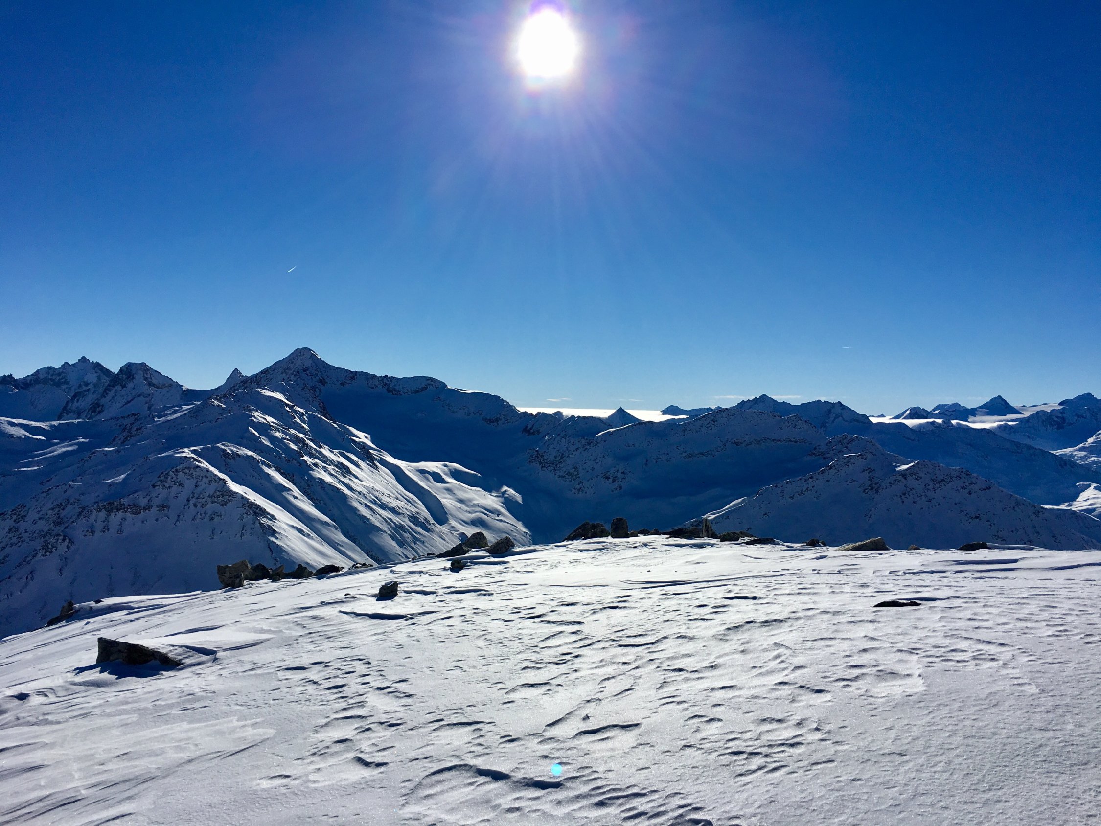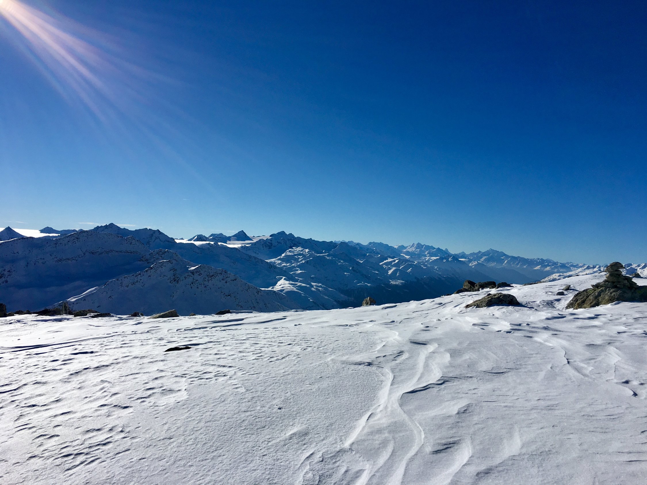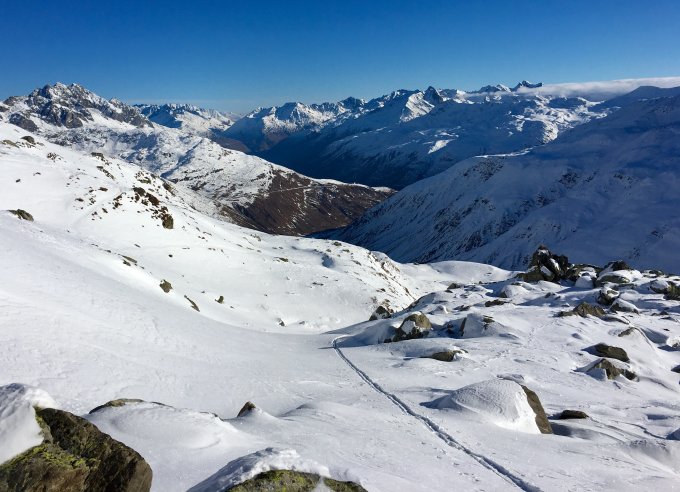 Wenig Schnee, aber machbar mit etwas Vorsicht in den Steinen im oberen Teil.