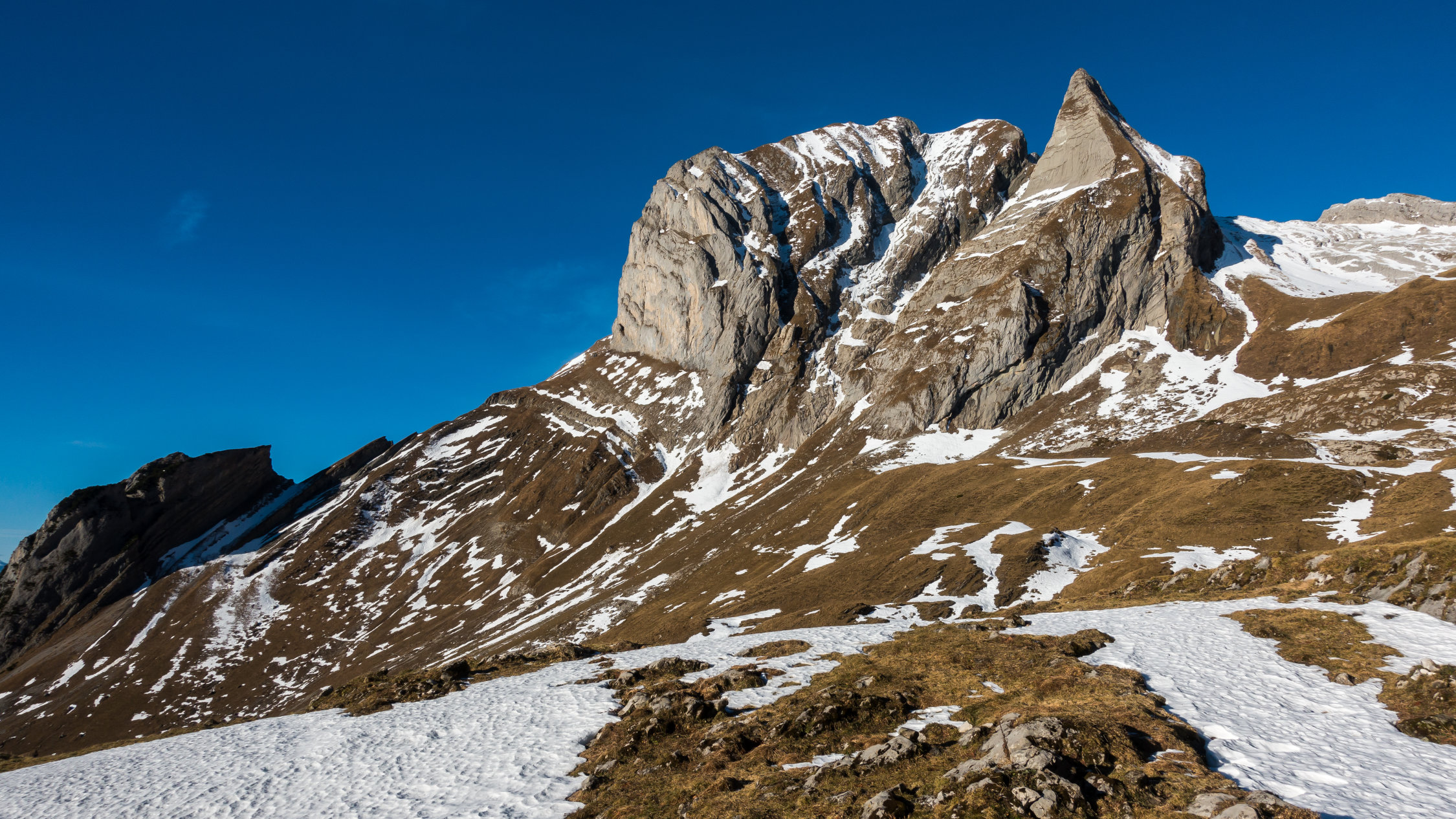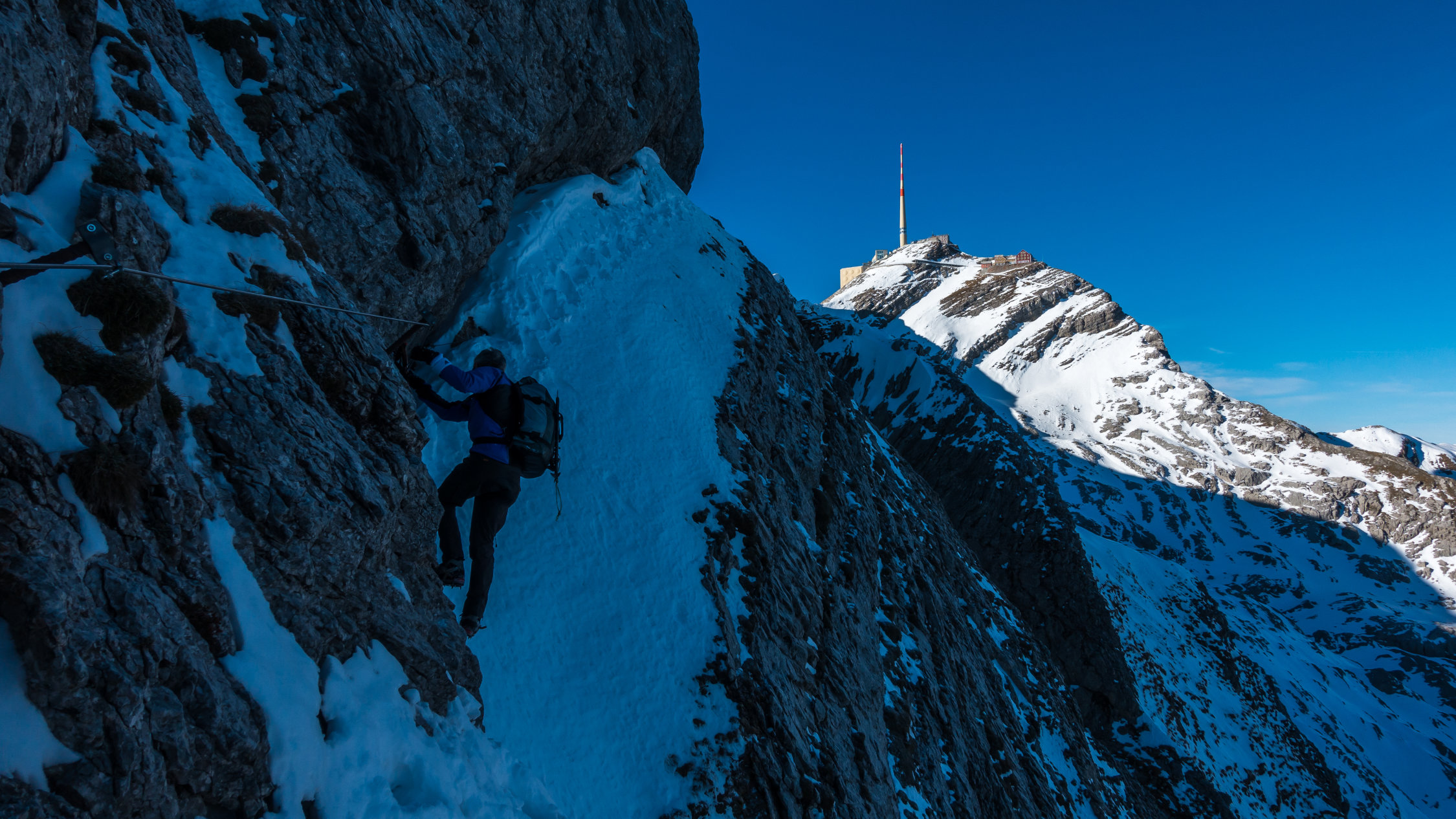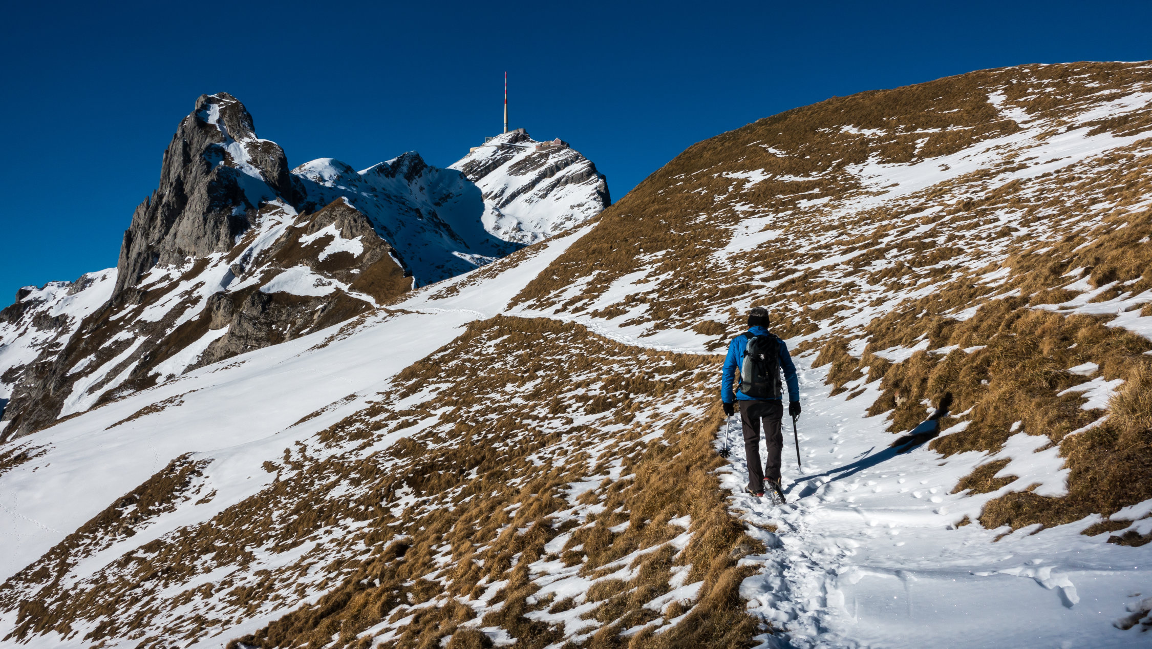 Für die Jahreszeit sehr gute Verhältnisse! Von Wildhaus über Tesel bis zur Chreialp trockener, angenehmer Wanderweg. Danach gefrorene Schneereste, ab Zwinglipasshütte praktisch durchgehend Schnee, gut tragend. Der Abstieg über die Fliswand zum Rotsteinpass sowie der Lisengrat bis zum Säntis hat mehrere sehr exponierte Stellen, die bei den momentanen Verhältnissen etwas heikel sind, da die Drahtseile teilweise unter dem Schnee begraben sind. Auf der gesamten Strecke vom Altmannsattel durch die Fliswand und auf dem Lisengrat bis zum Säntis sind Steigeisen unbedingt erforderlich und ein Pickel sehr empfehlenswert!! Keine eisigen Stellen, nur Schnee. Mit der nötigen Vorsicht und Schwindelfreiheit ist die Tour aber noch gut machbar. Man benötigt einfach mehr Zeit, heute von Wildhaus bis zum Säntis ca. 5 1/2 Stunden ohne Pause.