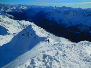 Fahrt durch die Bewilligunspflichtige Strasse nach Ebnen 1840 m, die heute immer noch trocken war, Start der Tour am 8.15 Uhr bei - 2 Grad, nach ca. 15 Minuten konnten die Ski bei Oberchäsern montiert werden, nach Oberstafel ist die Schneequalität schlechter als am letzten Wochenende, der Wind hat seine Spuren hinterlassen, der Aufstieg war heute recht rutschig, nicht einfach ohne Harscheisen, am Gipfel ein leichter Wind, die Aussicht war sehr gut, bei der Abfahrt so Mittelmässige Verhätnisse, hart decklig kurz einmal noch Pulverschnee,