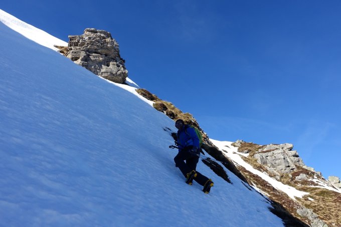 Der Aufstieg über die beschriebene Route auf den Hohgant bereitet derzeit keine Schwierigkeiten und ist Dank der stellenweise harten Schneeauflage bequemer zu begehen, als im Sommer.