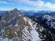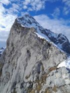 Heute von Nesselwängle auf den Gimpel. Bis zum Gimpelhaus komplett schnee- und eisfrei. Ab dort zunehmend Schnee und etwas Eis. Die Südflanke des Gimpels bis zum Ostgrat ist ebenfalls komplett schneefrei. Der Grat hat dann mal leichten Bruchharsch, mal gesetzten Pulver. Kein Trittfirn oder ähnliches, aber auch kein Eis. Steigeisen ab hier sehr zu empfehlen, insbesondere da die Schneedecke teilweise etwas dünn ist auf dem harten Boden. Pickel schadet auch nicht.
