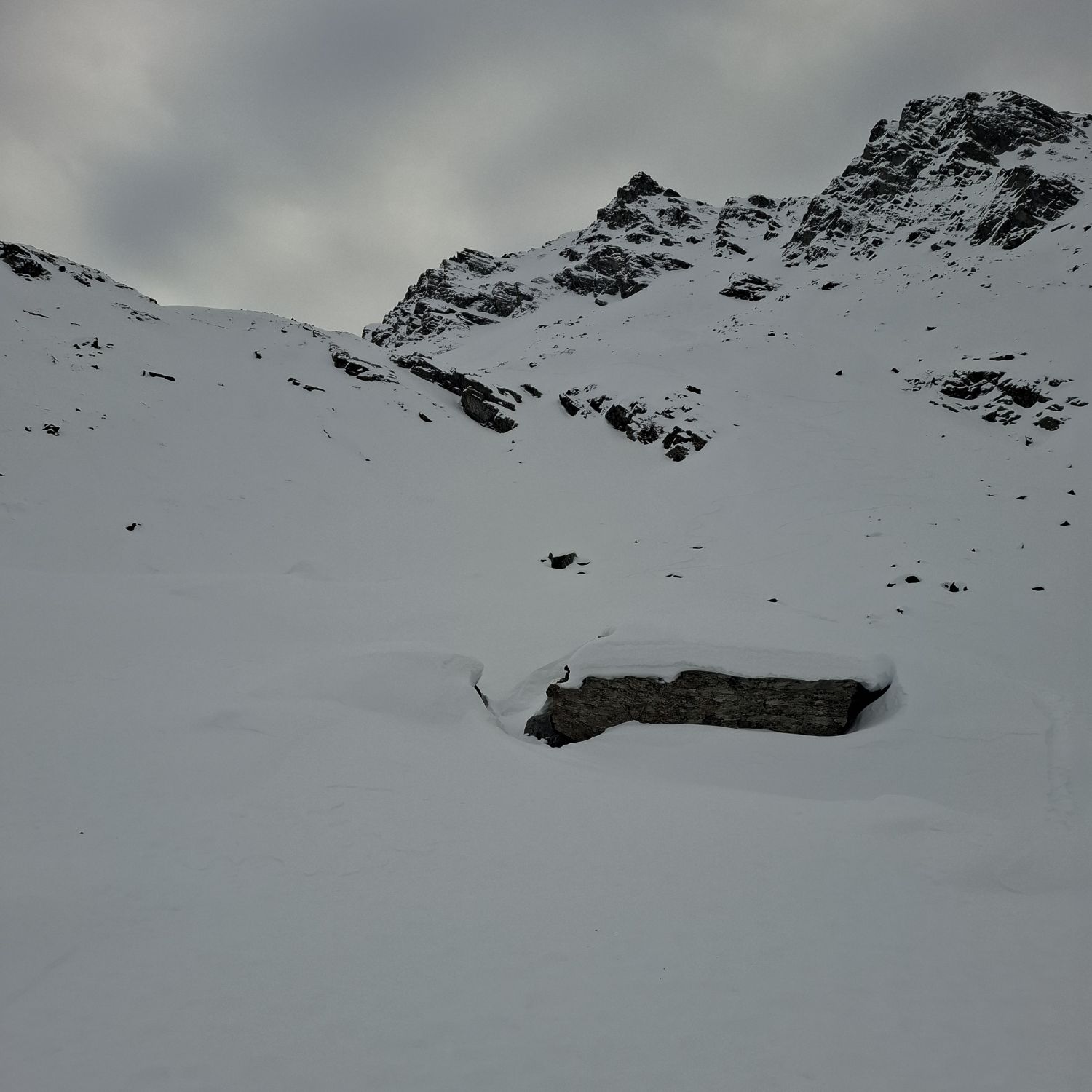 Durchgehende kompakte Schneedecke. Somit kein Steinkontakt und die Steine die sind, sieht man. Slalom fahren bei schlechter Schneequalität. Diffuses Licht machte es etwas unangenehm. Alleine heute auf der Rotbühel.