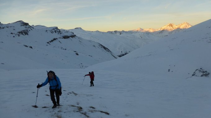 Die Tour lässt sich am besten als Expedition bezeichnen. Da braucht es Motivierte, die sich vom mühseligen Schneestapfen nicht beeindrucken lassen (Schneeschuhe in den flacheren Passagen wären hilfreich gewesen). Wir waren zu dritt absolut alleine auf diesem prächtigen Erdenplatz unterwegs. Der Piz Platta steht mit seinem mächtigen Aufbau markant da und bietet eine atemberaubende Rundsicht, die ihresgleichen sucht. Wir waren jedenfalls von Eindrücken nur so beschenkt. Danke Karl und Roland - wir durften gemeinsam wieder einmal eine sehr eindrückliche Tour gehen! Uf http://www.spaceglider.at/touren/bsm.htm sind no a paar Fötile …