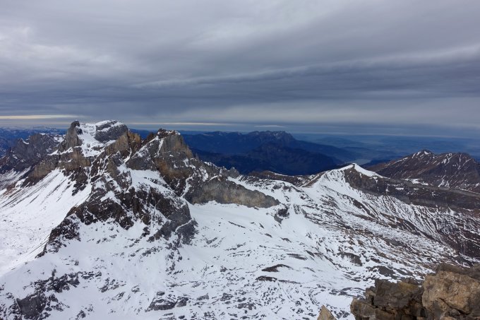 Der Südgrat auf den Rotstock ist abgeblasen und aper, ausser im untersten Teil, wo im guten Trittschnee auf- und abgestiegen werden kann. Wir benötigten keine Steigeisen.
