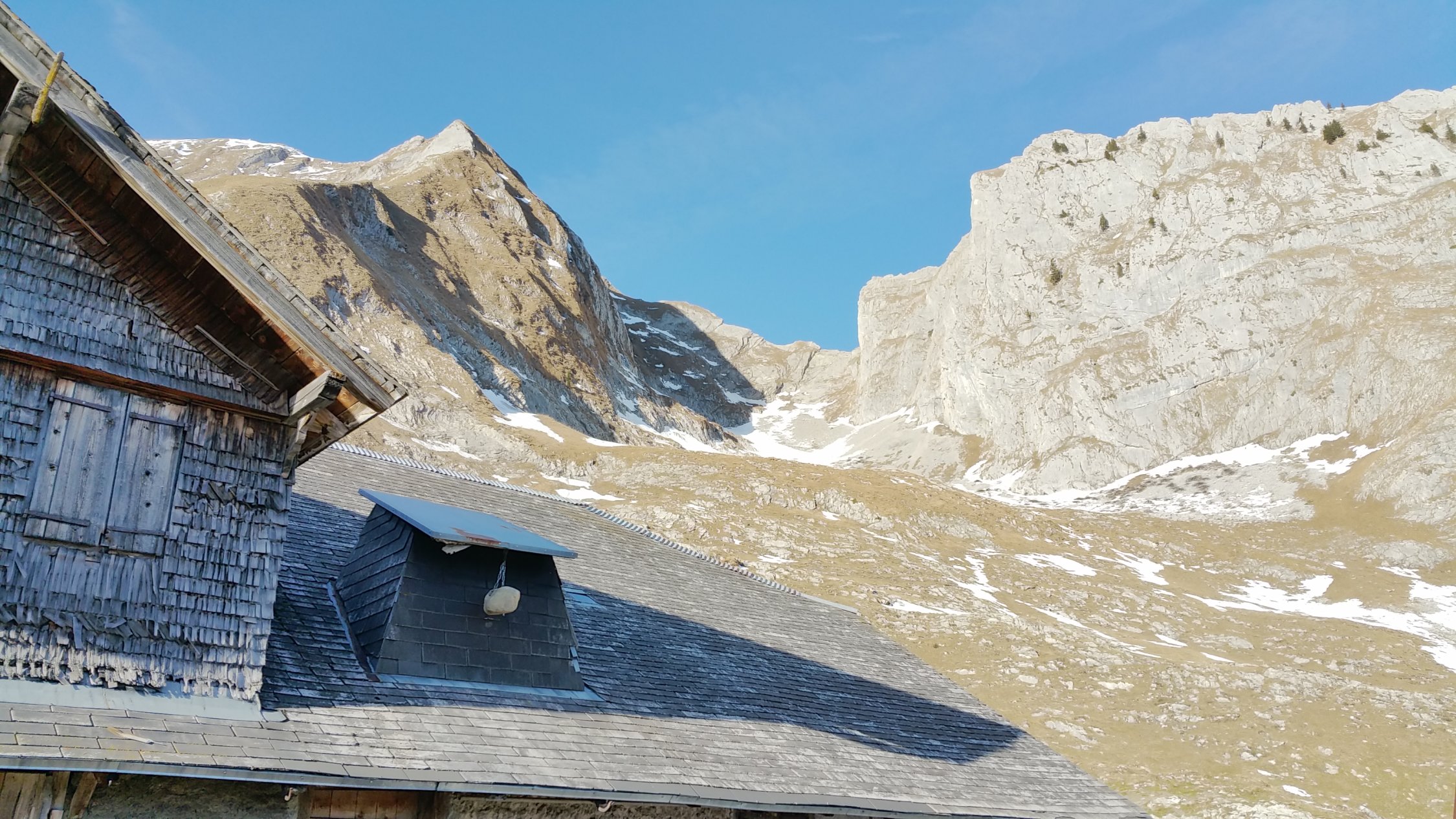 Zufahrt zum Parkplatz Haut du Mont nicht möglich. Es muss in der Kurve vor der Schranke kurz nach der Brücke über die Ruisseau du Gros Mont. Dadurch sind ergeben sich ca. 200Hm mehr. Ab der Alpe Gros Croset keinere Schneefelder. Ab der Alpe Brenleire Dussus ist die Wegfindung anfangs durch Schneefelder schwierig. Grössere Schneefelder bis zum Rücken des Aufsteigs. Im Aufsteig immer wieder Eis und Schnee. Durch die Steilheit besteht dadurch erhöhte Absturzgefahr. Ab dem Start am Morgen Sonne und mit zunehmender Höhe wärmer. Am Gipfel gegen Mittag zogen Wolken auf und es blies eine unangenehme Bise.