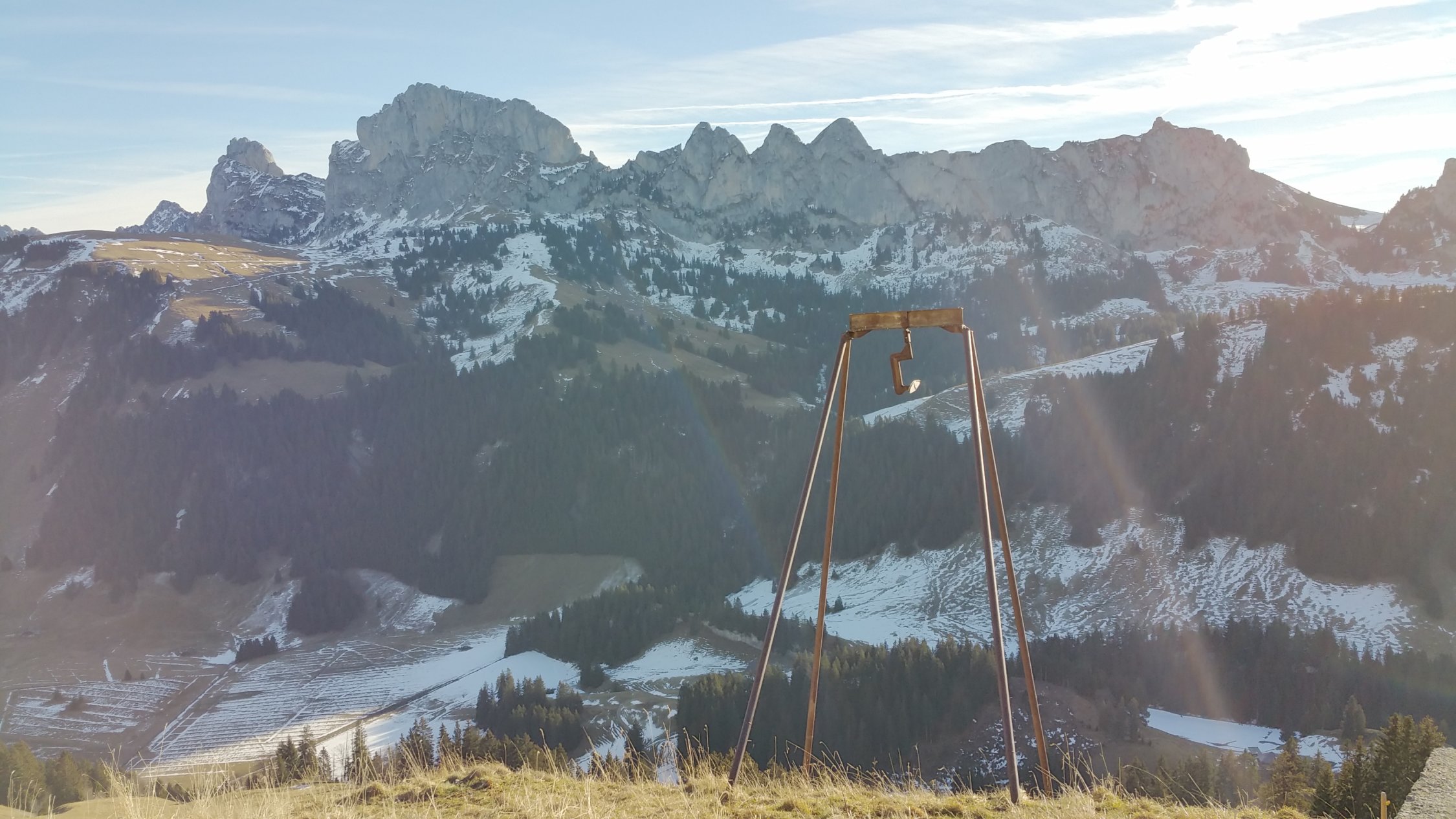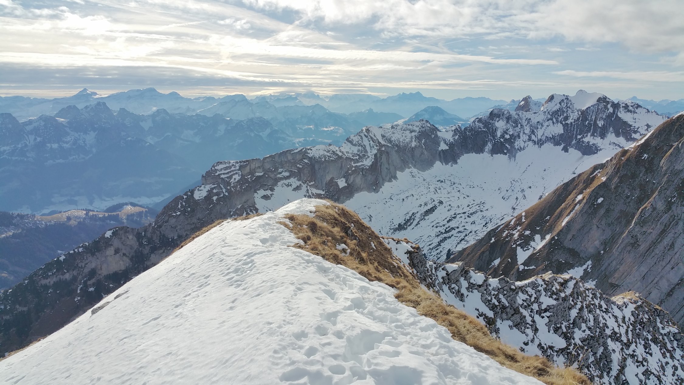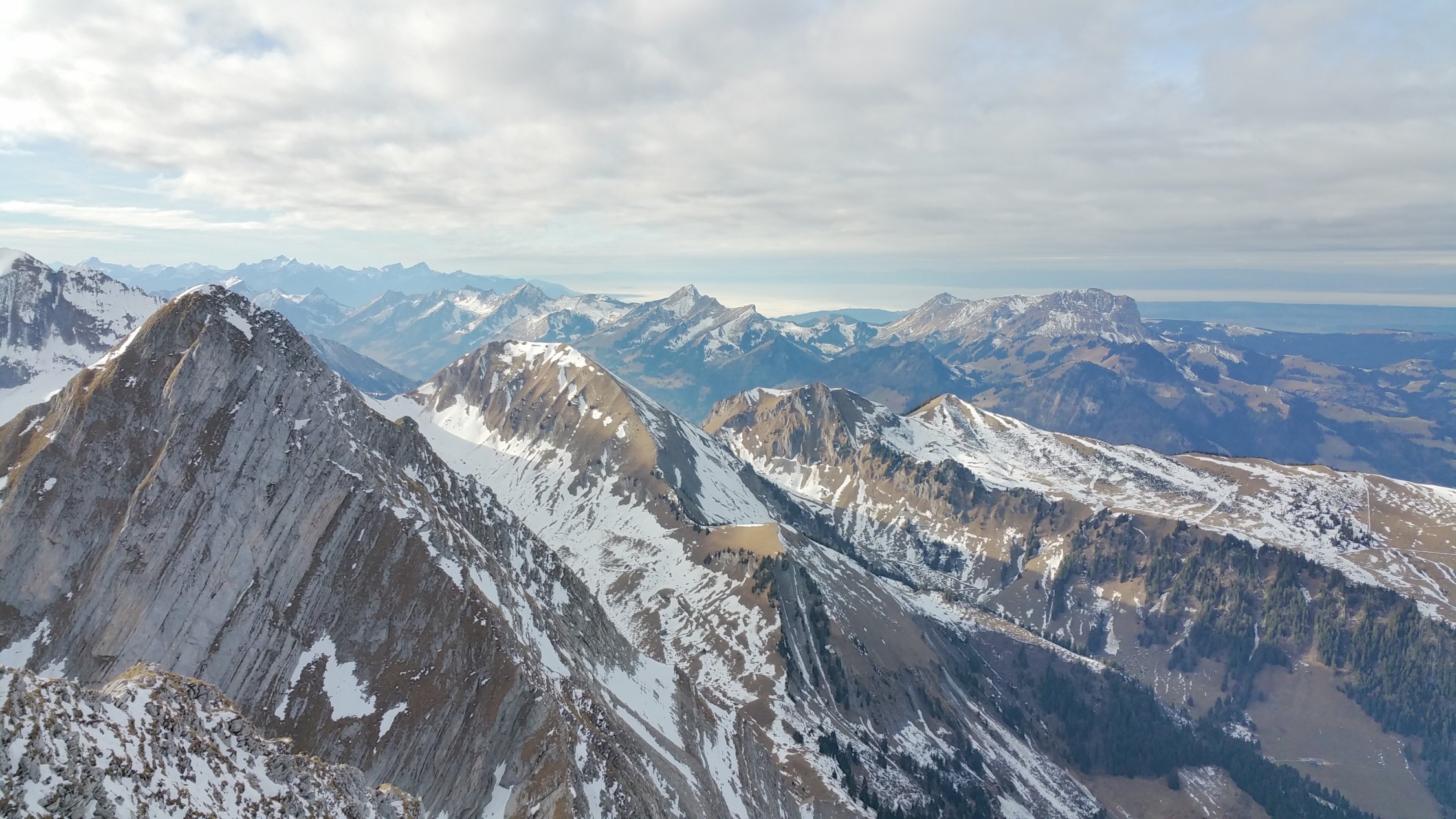 Wieder per Bike & Hike ab dem Parkplatz an der Brücke bis zur Alpe Brenleire Dussus. Wegen der Bise leider nur kurze Gipfelrast. Keine anderen Wanderer Am Gipfel. Letzter Gipfelbucheintrag ca. 1 Monat alt. Tour nur bei hühlen Temperaturen oder Bewölkung ratsam, da es Südseite ist. Bei feuchten Bedingungen schmieriger Boden und Absturzgefahr durch Ausrutschen.