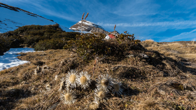 Super Verhältnisse, milde Temperaturen. Bis zum Barbielergrat trocken, ab dort Schneefelder und in der zweiten Hälfte des steilen Gipfelhanges sind Steigeisen angenehmer. Der Abstieg Richtung Palfries ist problemlos, nur im obersten Teil etwas rutschig, also Steigeisen noch anlassen. Ab der Leiter praktisch schneefrei.