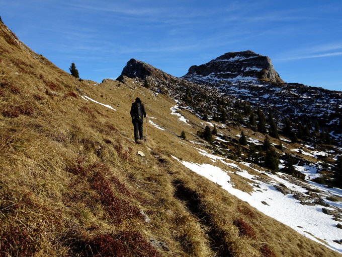 Die südliche Umgehung des Gipfelstocks vom Pkt 1921 m. aus ist noch schneebedeckt.