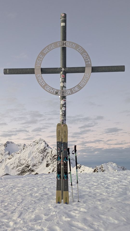 Weiterweg zum Kaltenberg bis ca 60hm unter den Gipfel machbar.Dann kniehoher Schnee mit Deckel.Ohne Gipfel umgedreht und auf Aufstiegspur zurück zum Maroikoppf.Mühsam da Bruchharsch und sehr diffuse Sicht. Keine Sonne. Konditionstraining!