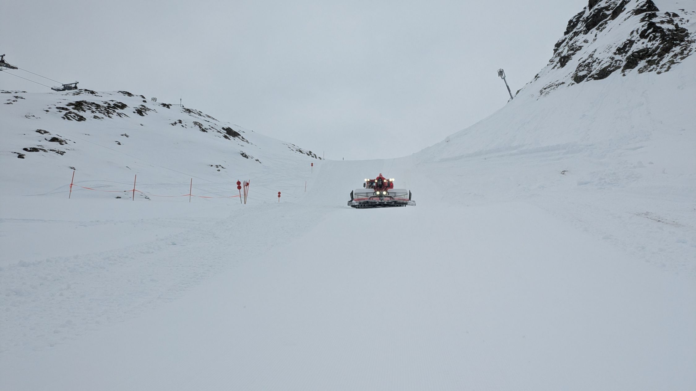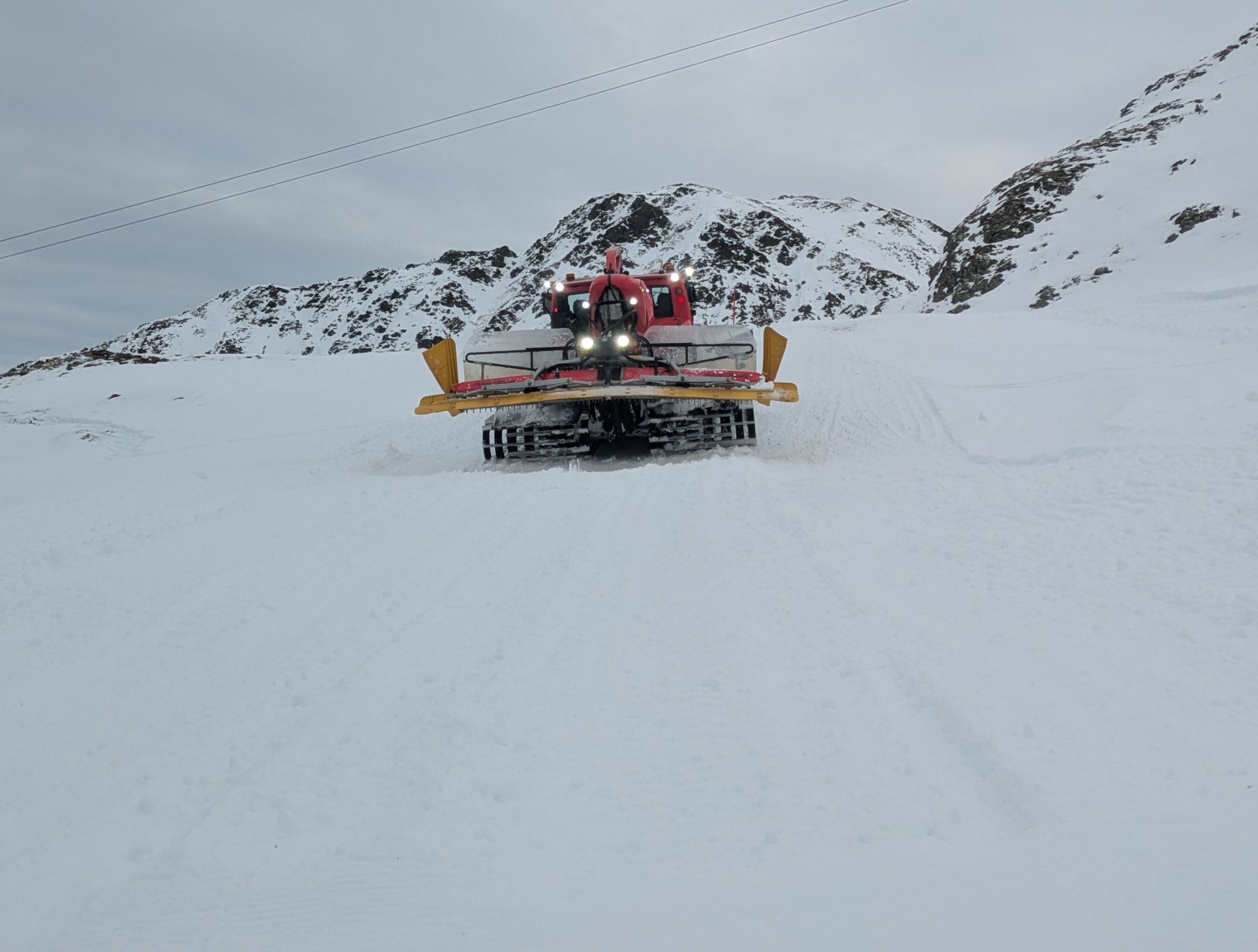 Genügend Schnee an Alpe Rauz. Beim runter 2 Pistenraupen extra fur mich im Einsatz für gute Anfahrt!