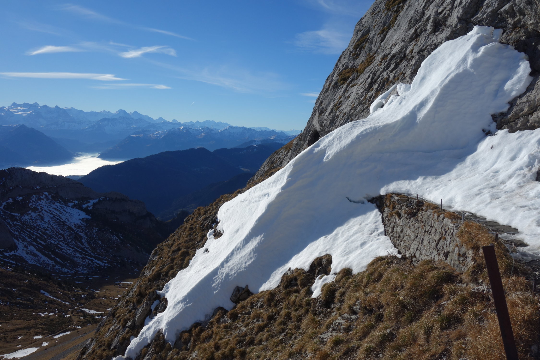 Einfach immer wieder herrlich, dieser Aufstieg auf einer unbekannten Route zum Pilatus. Tiefblicke etc. garantiert. Wichtig! Bei mehr Schnee nicht mehr machbar (Lawinengefahr und Weg unter den Felsen nicht mehr passierbar)