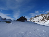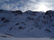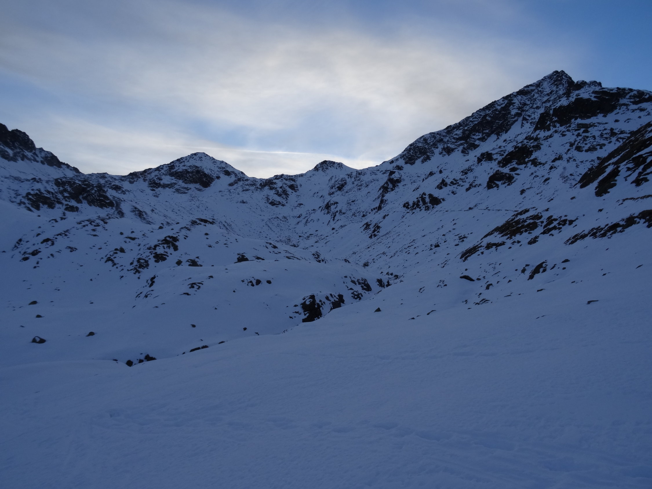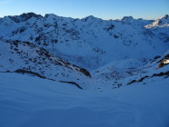 Die Schneedecke zur Fuorcla Radönt ist gut tragend oder 10cm Pulver. Die Radöntseite Route 52b weisst die besseren Schneeverhältnisse auf als Route 536b.