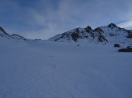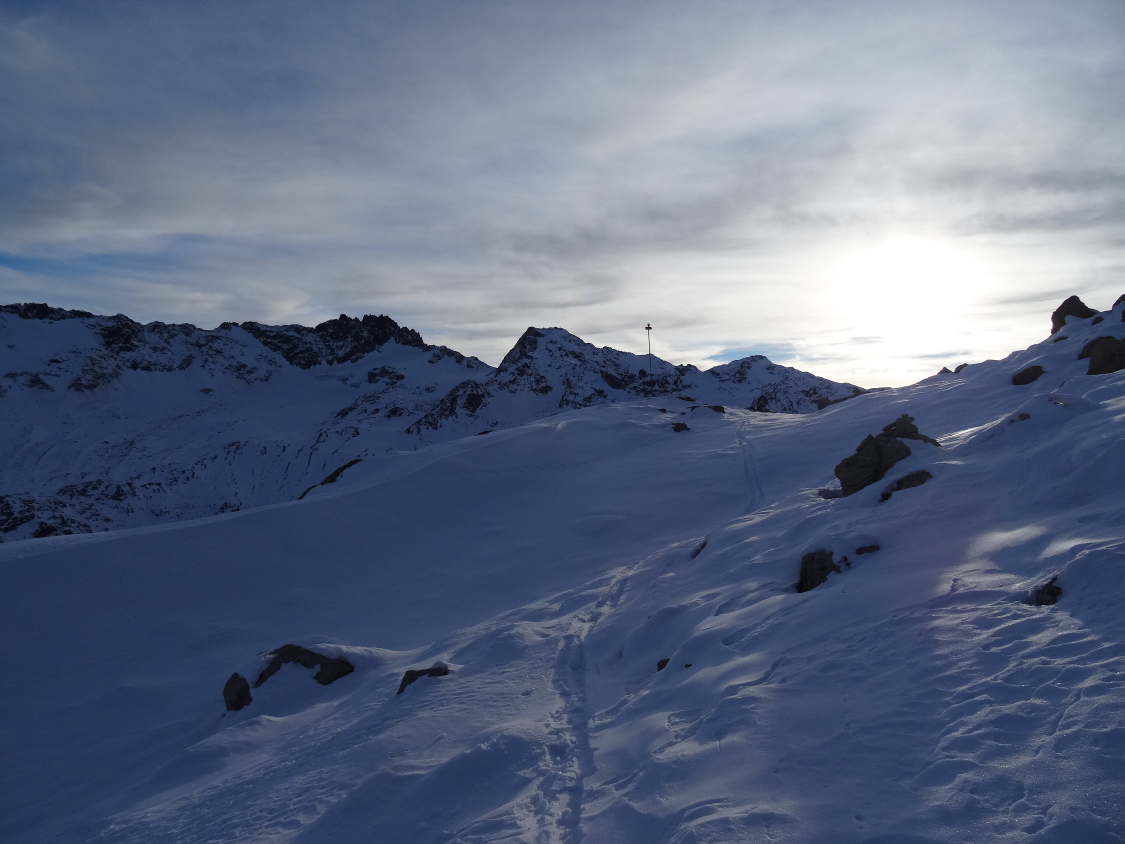 Geht in der Abfahrt ohne nennenswerten Steinkontakt. Der Abstieg von der Rothornfurgga ist auf den ersten 70Hm mit Steigeisen gut zu gehen, dann kräftezehrendes durchbrechen ohne Ende. Mit Ski runter ist zur Zeit keine Alternative. (das Übel der ganzen Tour). Der weiterweg zum Gipfel ist ok. Hart, Gletscher windgepresst, Windgangeln und teilweise kurze Sequenzen Pulver.