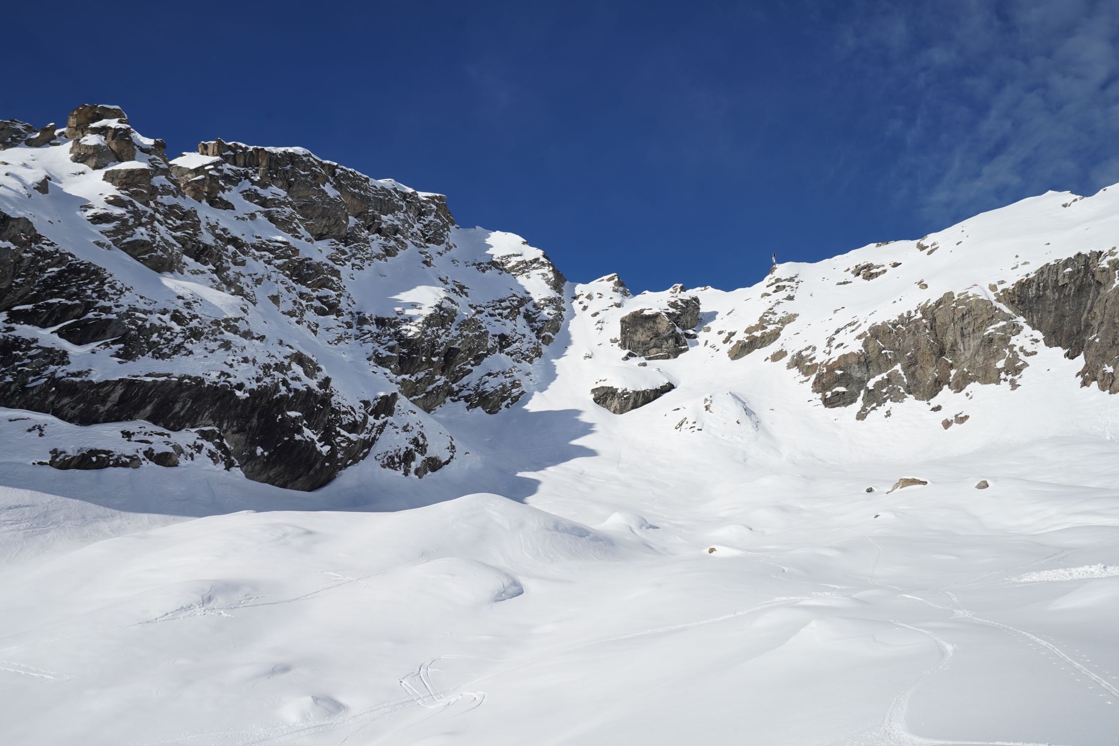 Von Kippel zur Lauchernalp kaum Schnee. Dann gute Schneeverhältnisse zum Aufsteigen, aber harter Schnee. Mein Natel ist leider ausgefallen, so dass ich nicht das Couloir zur Märbiglücke rauf bin, sondern ein benachbartes Couloir. Dort ab 2900 m Bootpack, mit den Füssen eingebrochen.