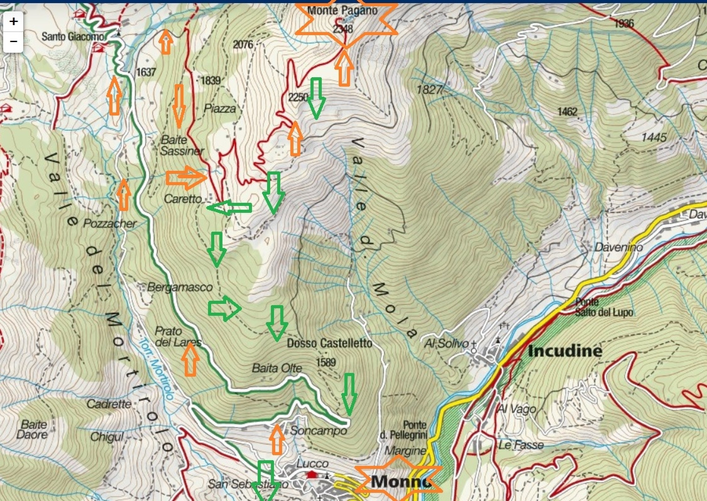 Abfahrt sich wie der Aufstieg Dann richtung Links zu 1900m.u.m und dann bis Monno