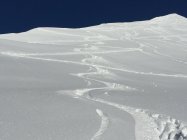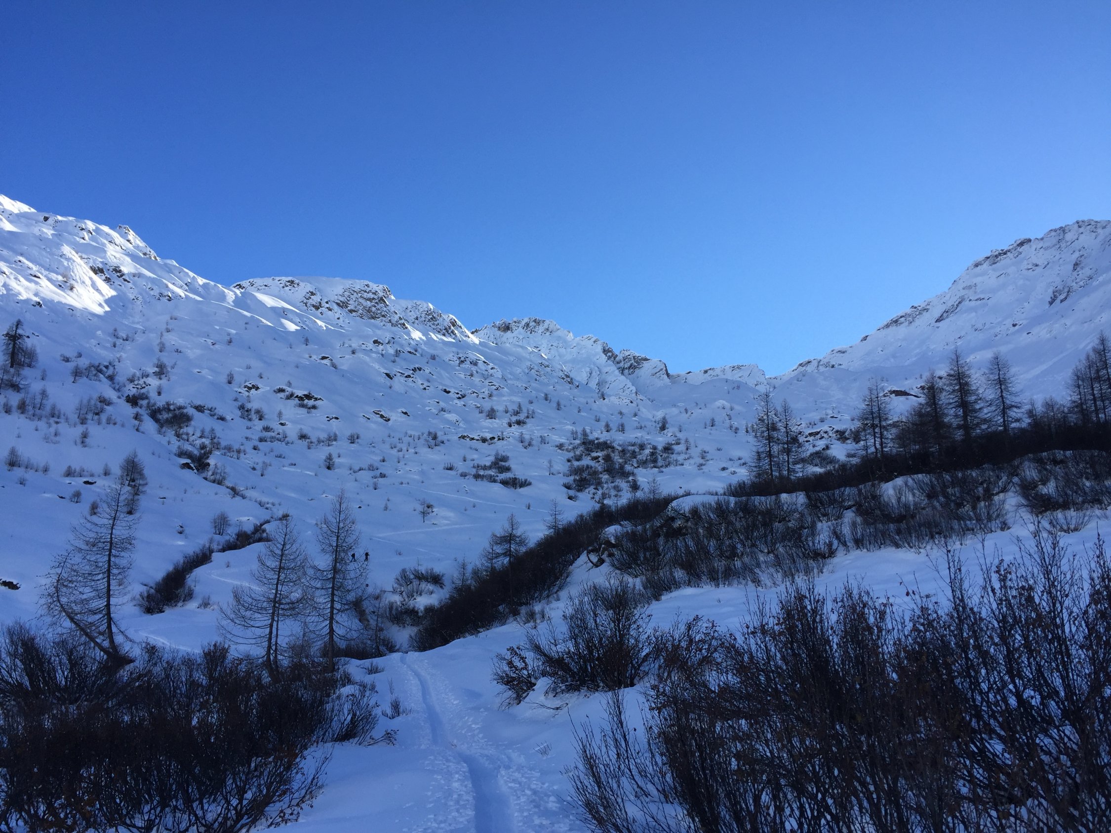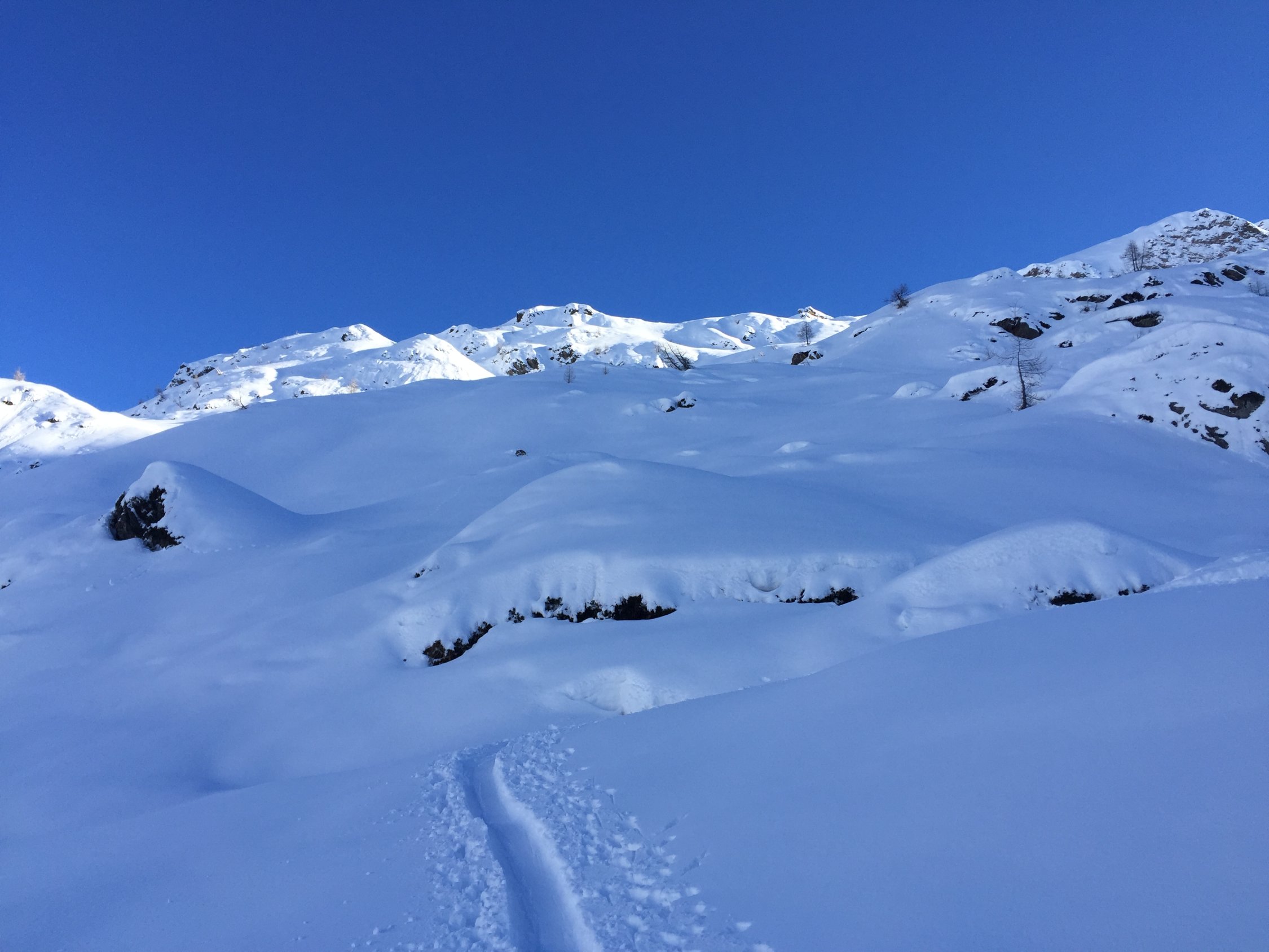 Auf der Suche nach Pulverschnee fuhr ich heute ins Bedretto. Und richtig, während es im Norden grünt und braunt, traf ich schon in Airolo eine (wenn auch dünne) Neuschneeschicht an. In All' Acqua, dem Startpunkt zu vielen Bedretto-Touren, war denn der Parkplatz auch gut belegt von Tessiner und Deutschschweizer Tourengängern. Beim Start minus 1 Grad und ca. 20 cm gedeckelter Neuschnee, zuerst Aufstieg durch den Wald, das ging gut. Dann ab der Brücke im Val Cavagnolo Übergang zu leicht gedeckeltem Pulver, zuerst nicht so viel, aber mit der Höhe stetig zunehmend und deckelfrei. Aufstieg in guter Spur durch's Val Cavagnolo und dann links über mehrere Absätze zum Gipfelhang. Dieser weist eine gute, teils luftige Spur auf. Alles sehr gut und ohne Harscheisen machbar. Zudem kann man den Poncione Val Piana auch bei Stufe 3 gefahrlos begehen. Grosse alte Schneebretter und auch neue an den steilen Hängen ums Val Cavagnolo mahnen zur Vorsicht, auch wenn mir die Sache sicher schien. Nach schöner und sonniger Gipfelrast dann eine tolle Abfahrt im Pulver bis zur Brücke, von da an Runtergurken dem Weg nach im Deckelschnee. Ging ganz gut. Viele umliegende Gipfel erhielten heute Besuch, so sah ich Tourengänger auf dem Ghiaccaio di Valleggia, auf dem Poncione di Valleggia, gespurt schien mir auch der Grandinagia. Ganz viele waren am Assassinavacche, dem Kuhtöter (was für ein Name...), einem Vorgipfel des Val Piana.